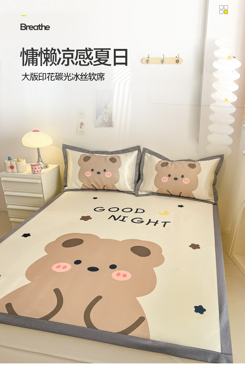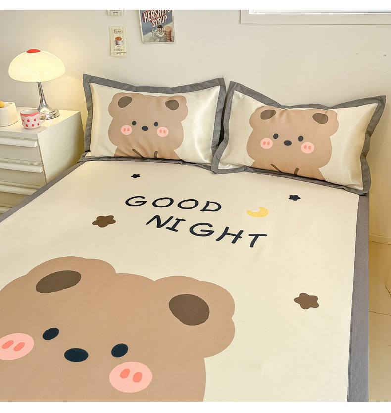 柒月 2024新款大版数码印花1600D加厚碳光冰丝席 晚安熊