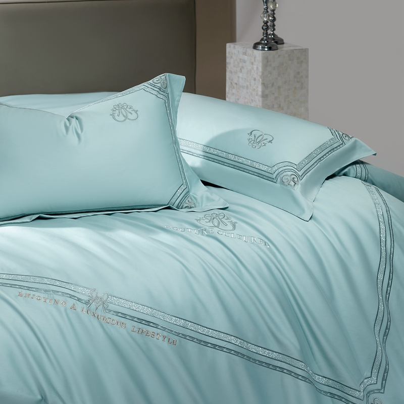 商品名称:高大尚2025春夏新品长绒棉高端绣花四件套-法尔曼 法尔曼 极光蓝