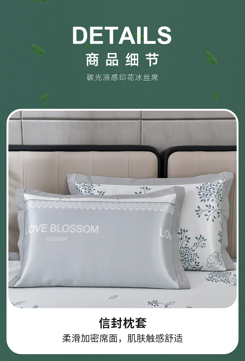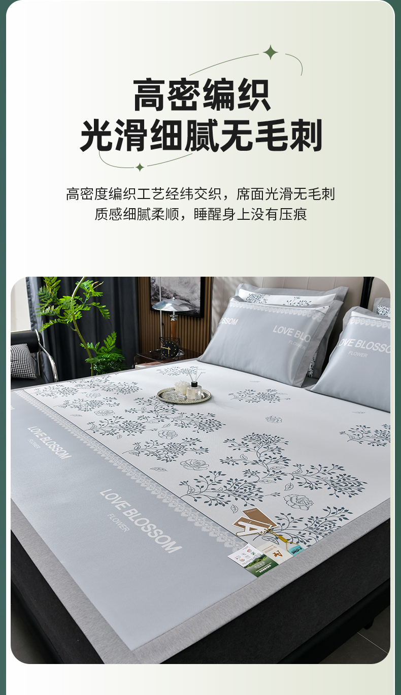 小牛席业 2024新款加厚款碳光凉感印花冰丝席 清新叶语-灰