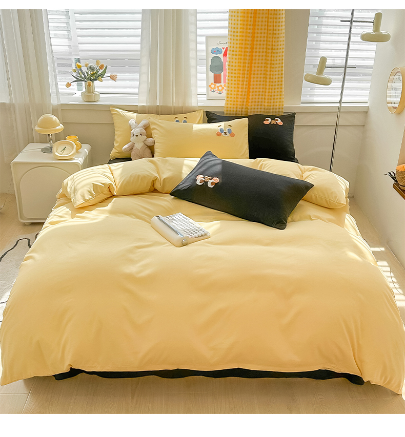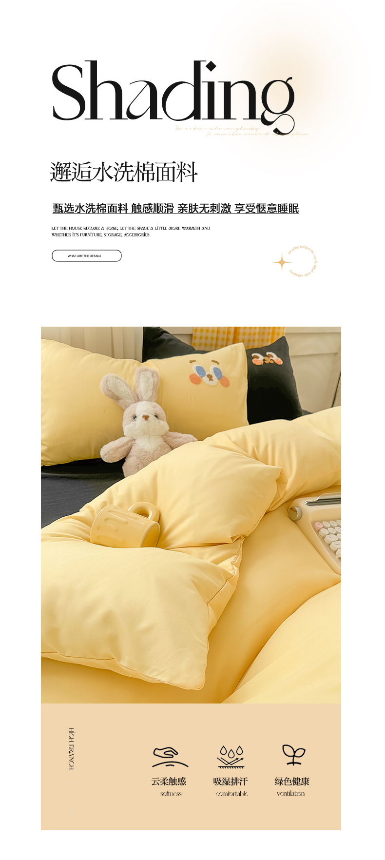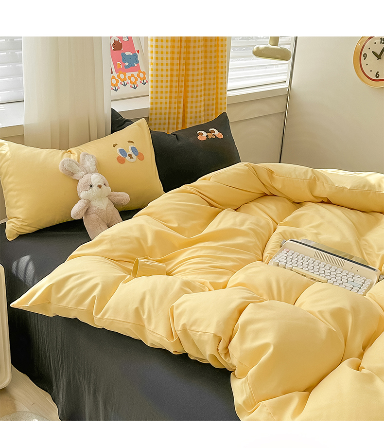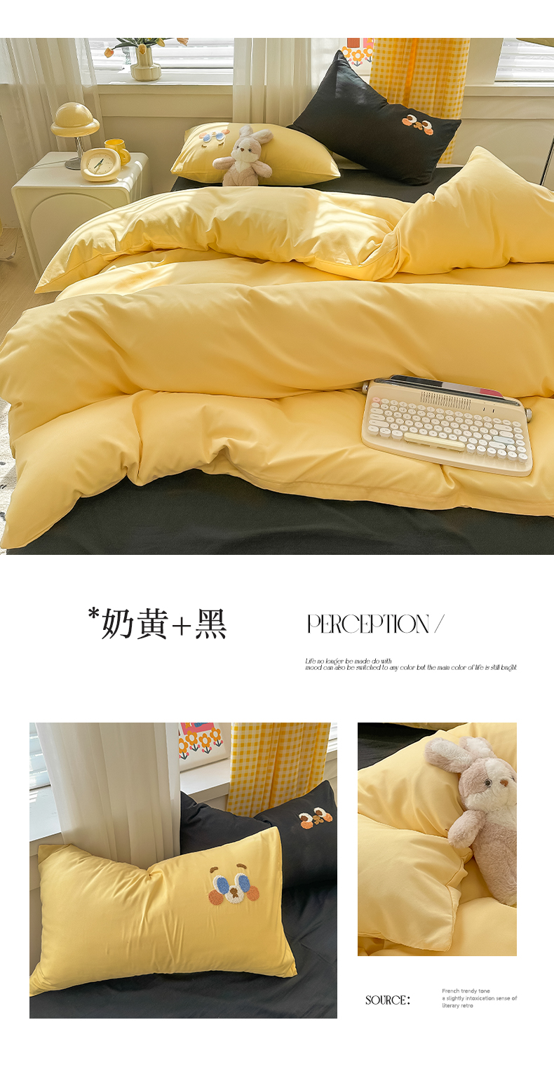 当前位置: 91家纺网 > 商品网购 > 床品套件 > 四件套 > 水洗棉四件套 > 韩都家居 2024新款水洗棉萌眼系列四件套 奶黄+黑