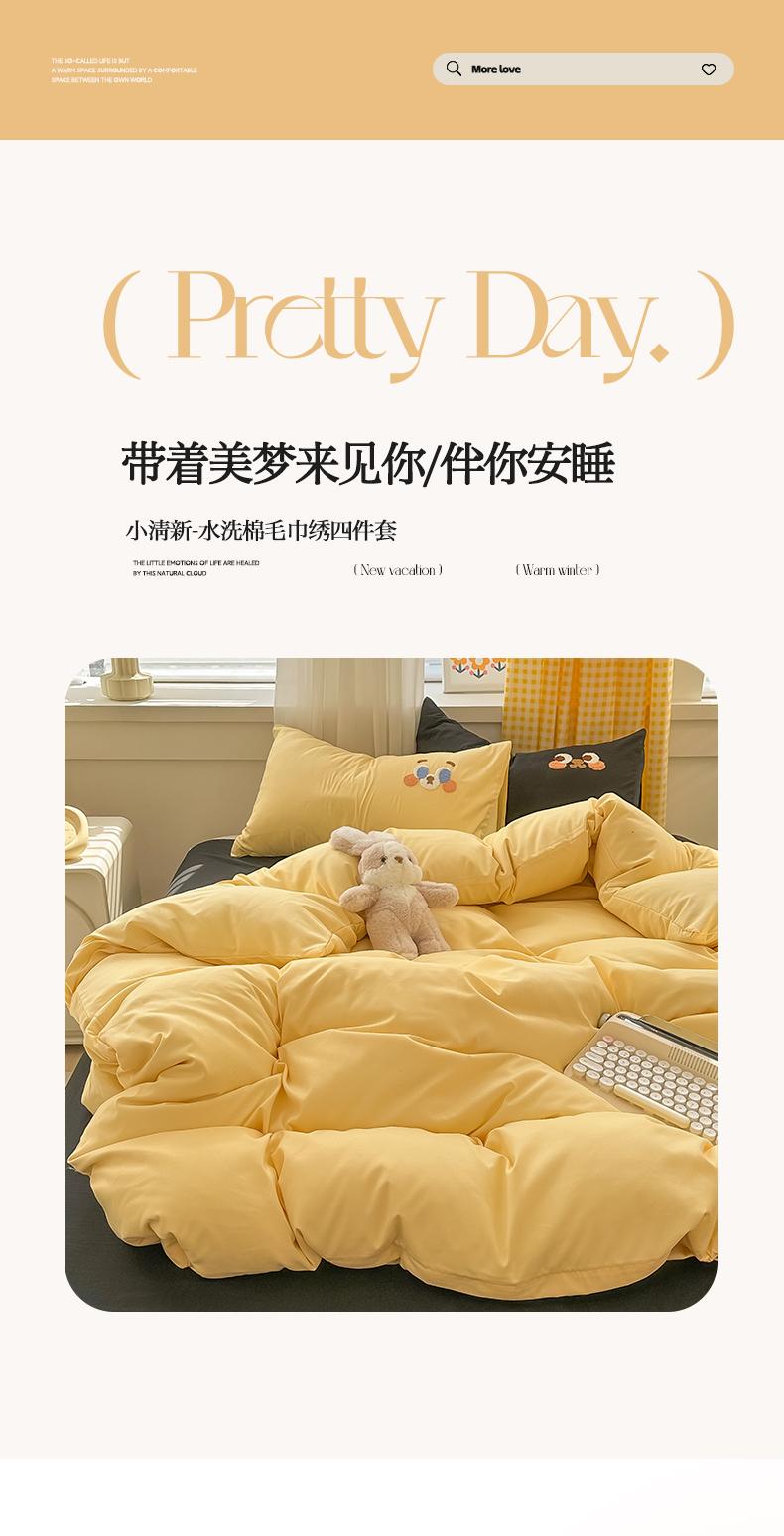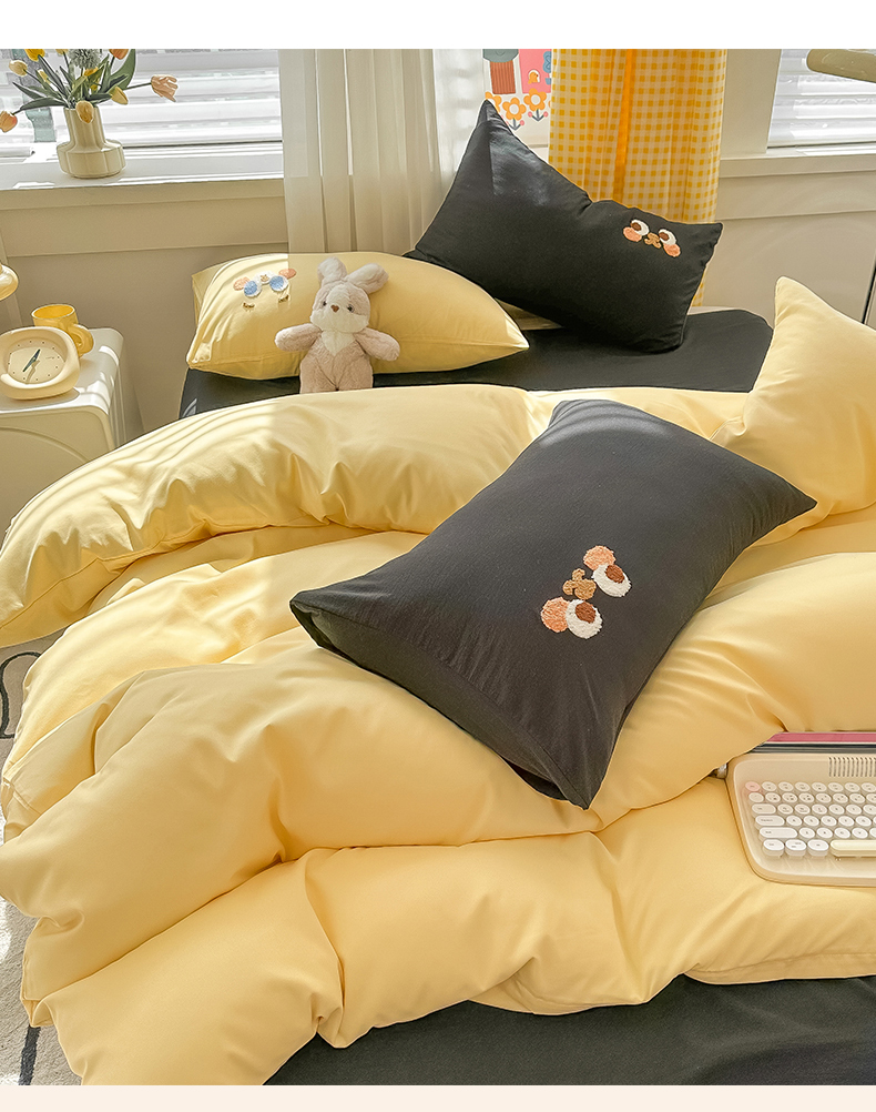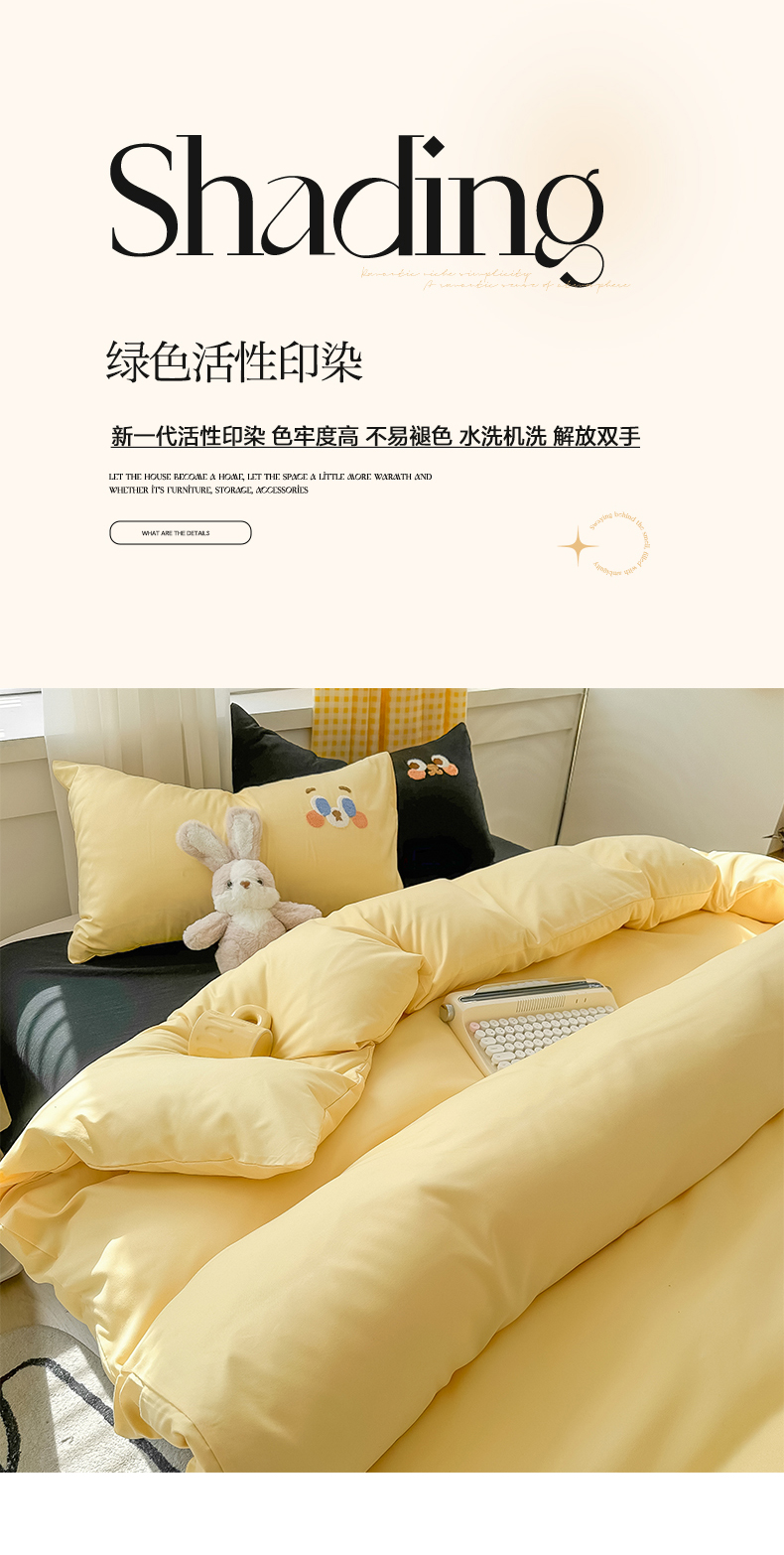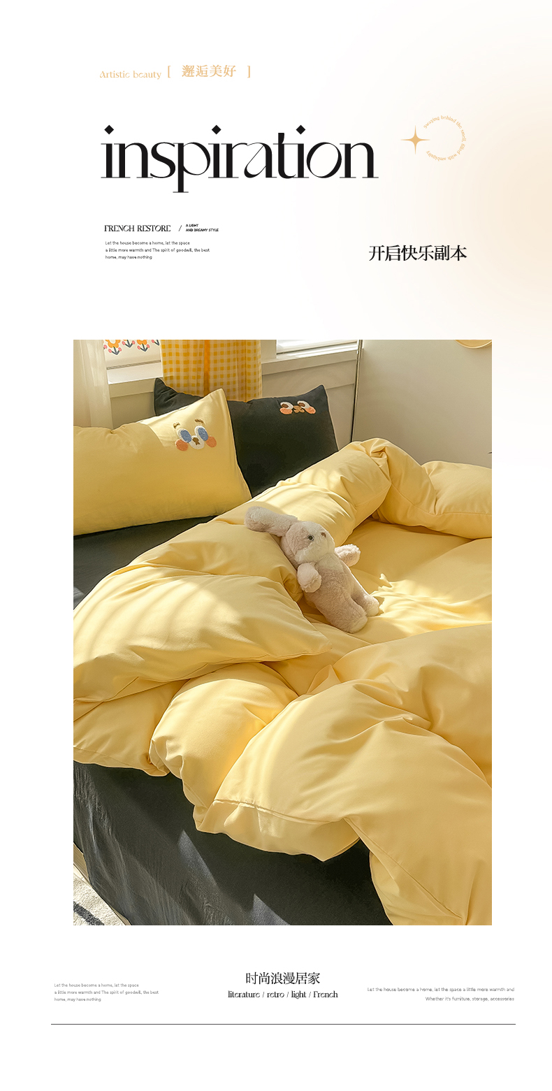 当前位置: 91家纺网 > 商品网购 > 床品套件 > 四件套 > 水洗棉四件套 > 韩都家居 2024新款水洗棉萌眼系列四件套 奶黄+黑