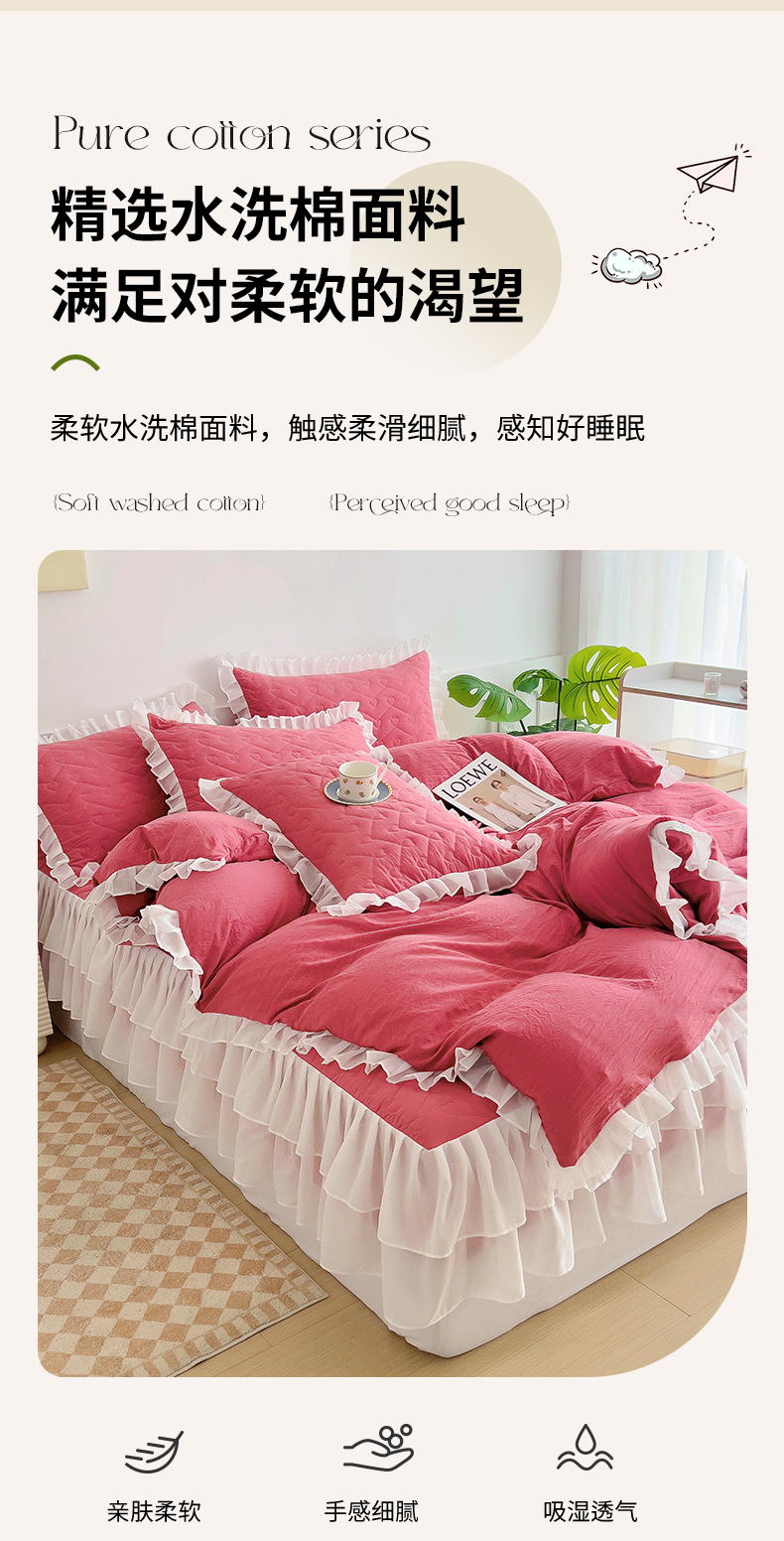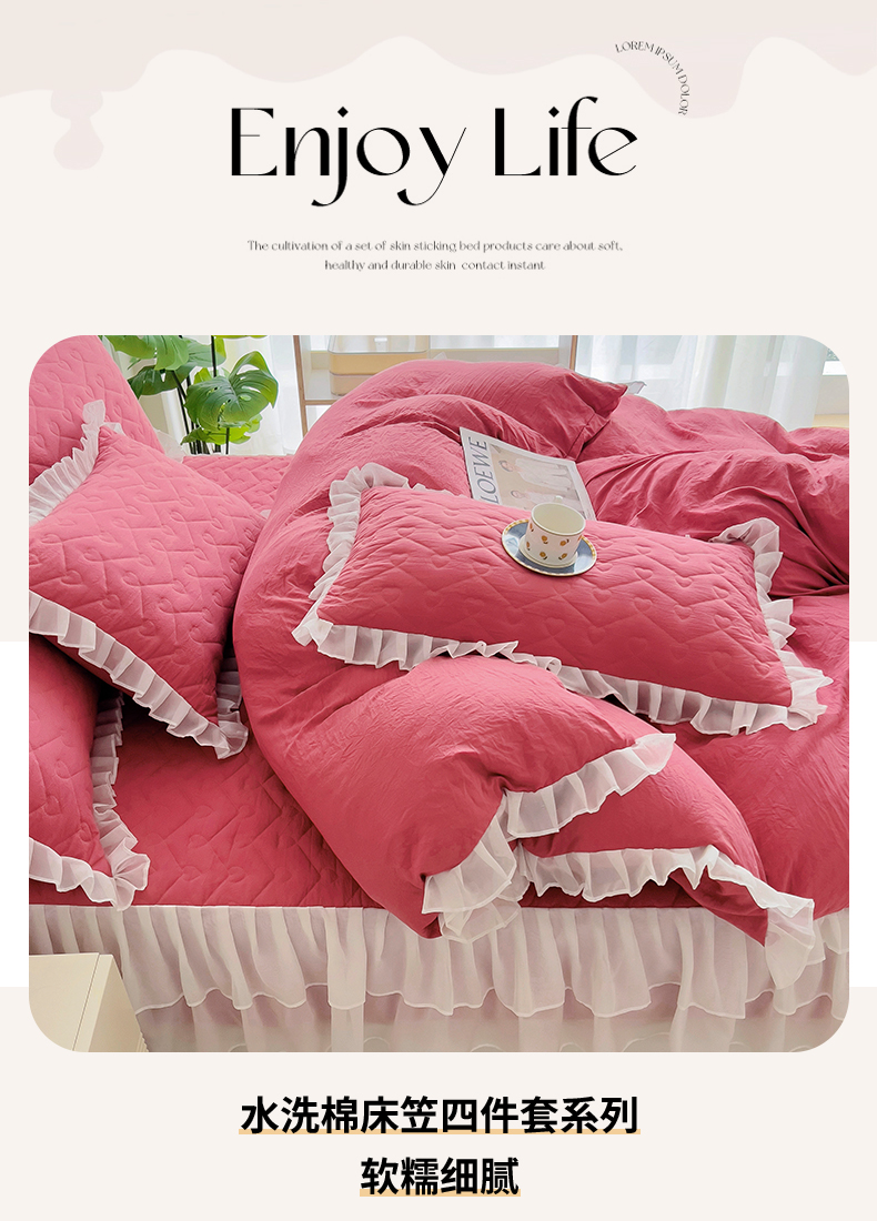 (总)屹成家纺 2025新款水洗棉床裙款四件套-倾城(四件套控价208元起),倾城-大红,倾城-豆沙,倾城-粉玉,倾城-橄榄绿,倾城-卡其,倾城-浅紫,倾城-银灰