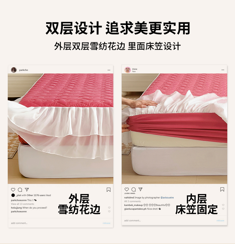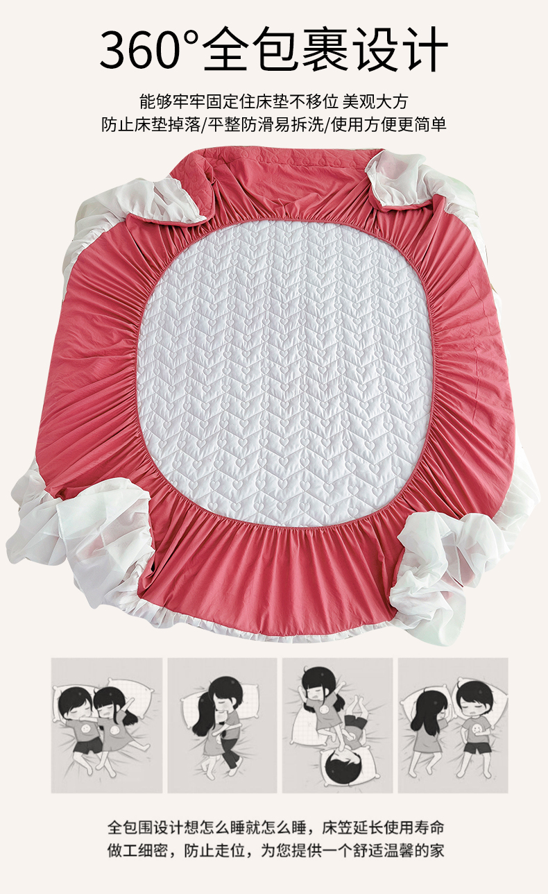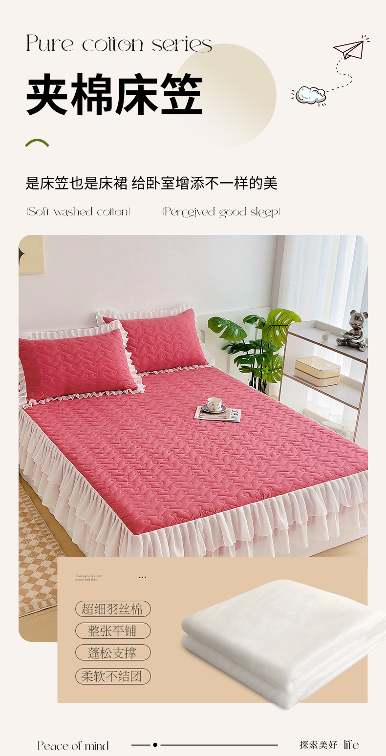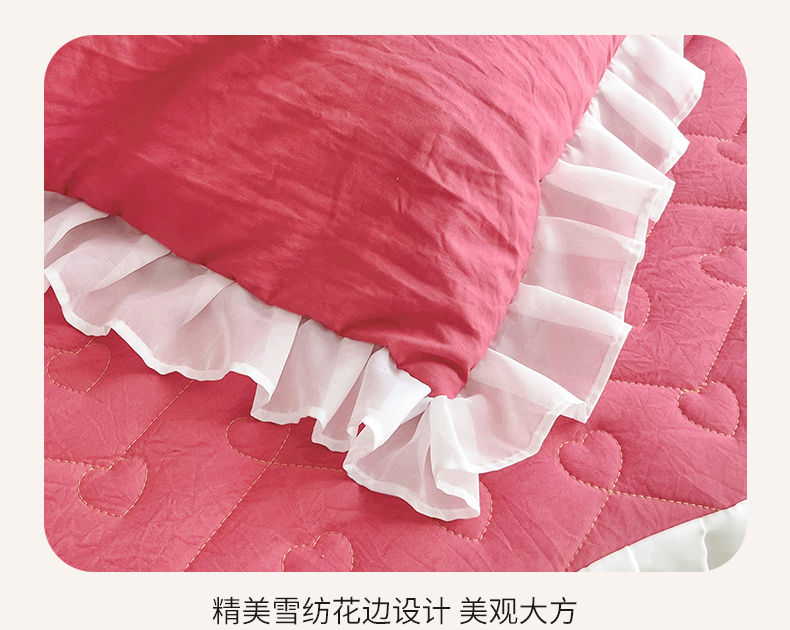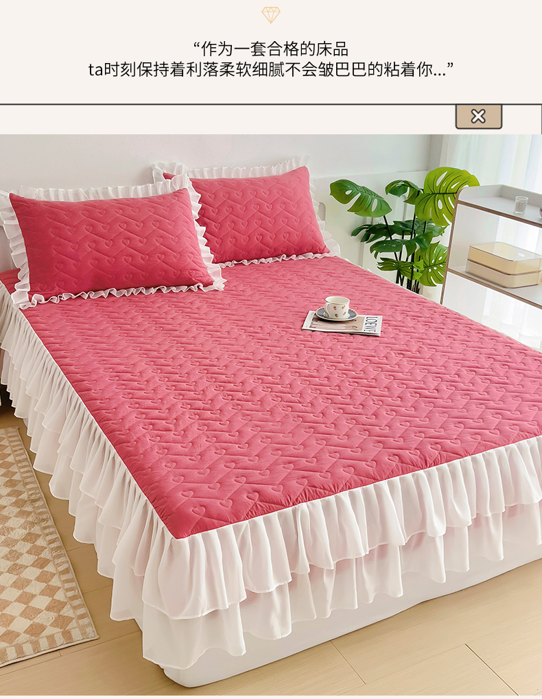 (总)屹成家纺2025新款水晶绒夹棉绗缝蕾丝床裙三件套(塞纳河畔)床裙单件起售价不低于105元,大红,豆沙,翡翠绿,粉玉,橄榄绿,蔚蓝,银灰