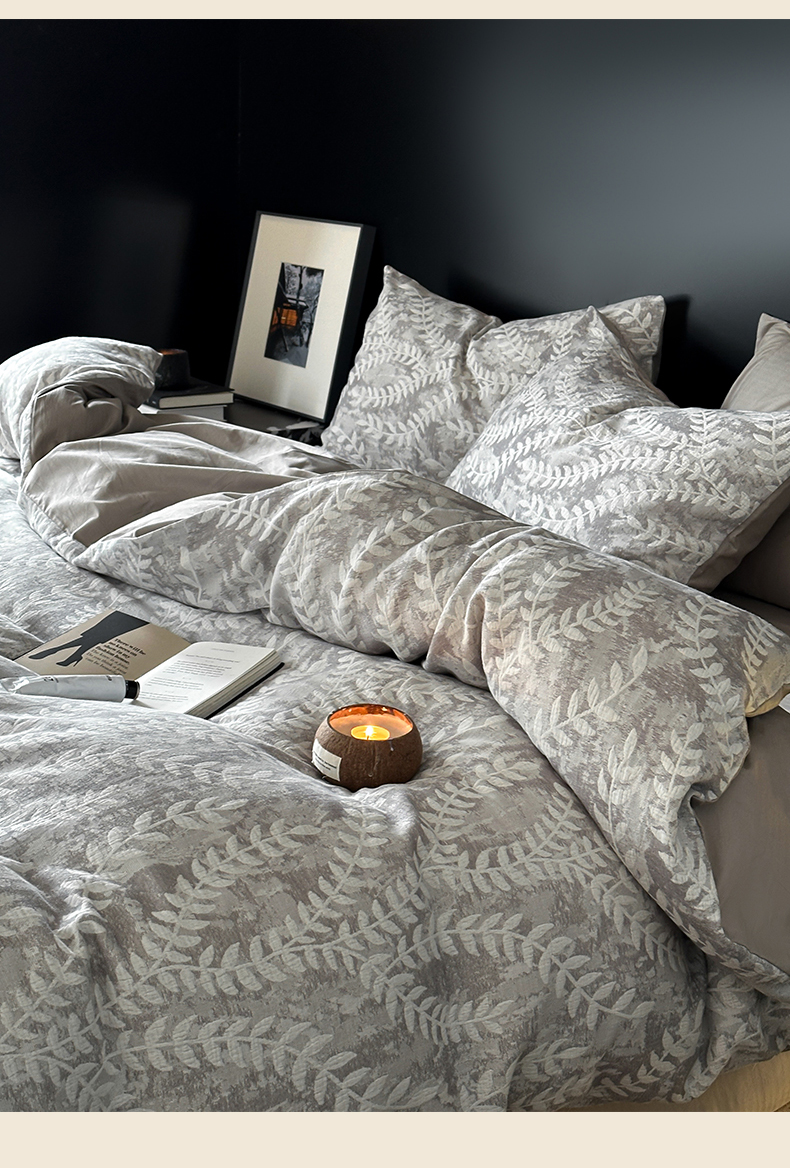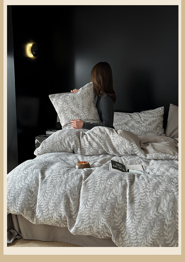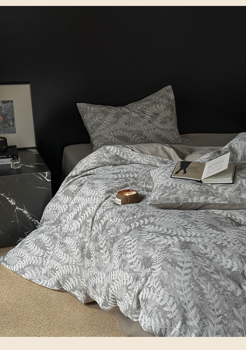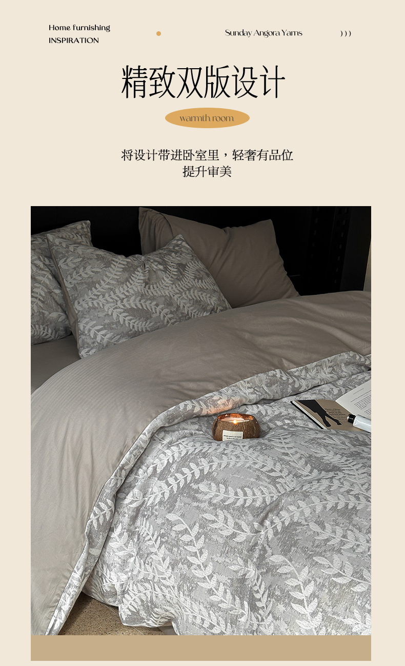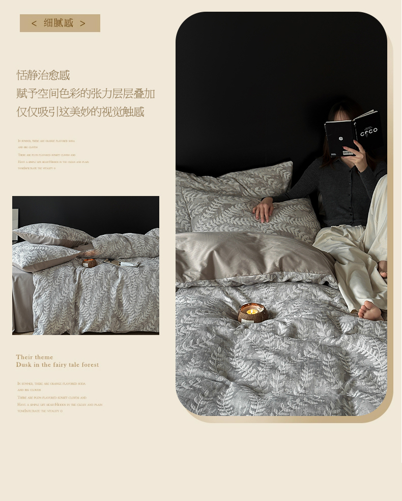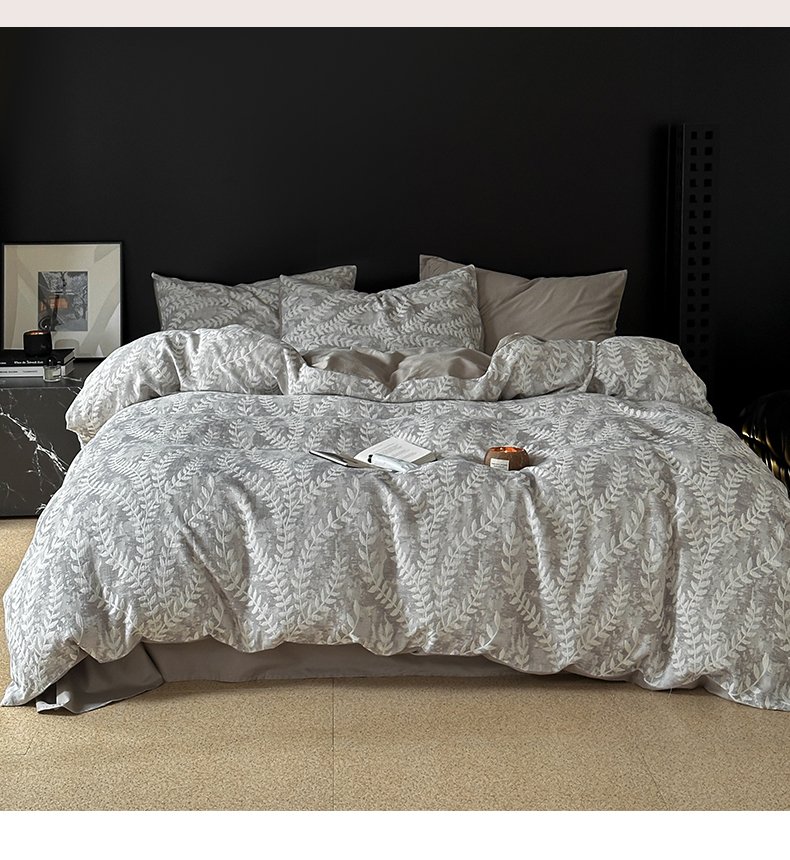 名品优仓 全棉水洗棉三层纱提花系列四件套-春意怏然 春意怏然-灰