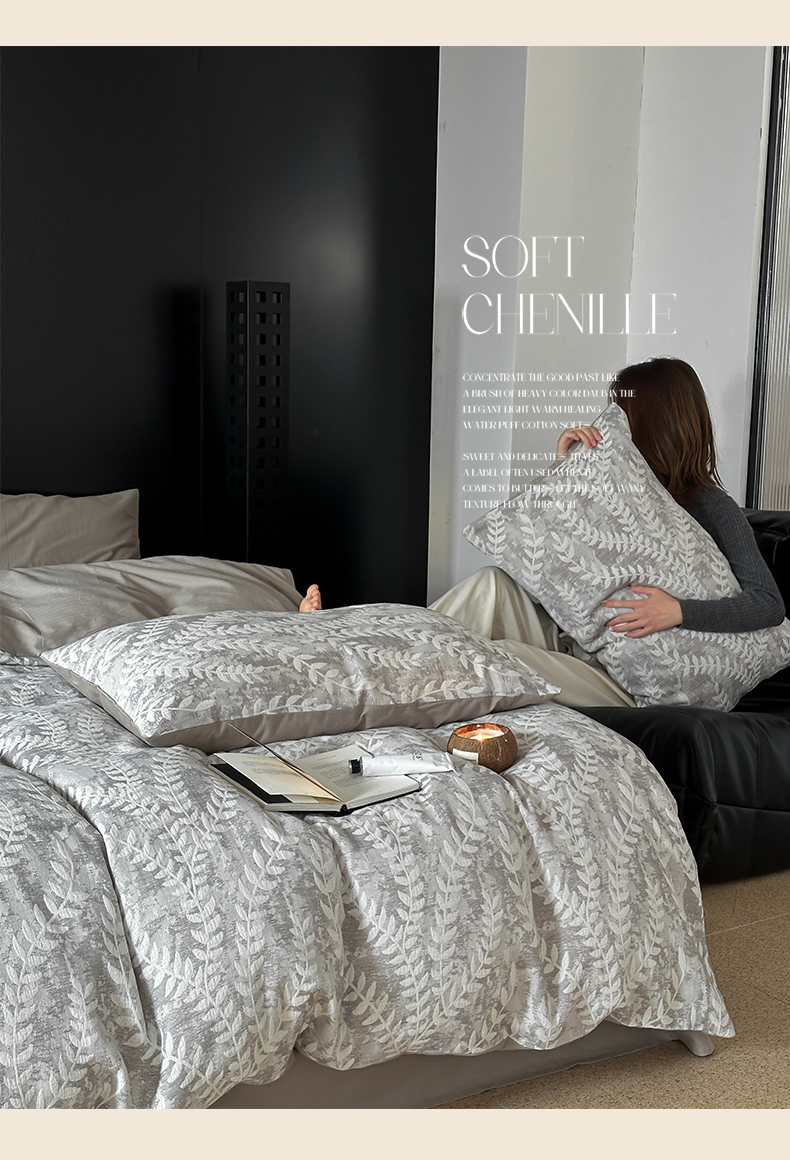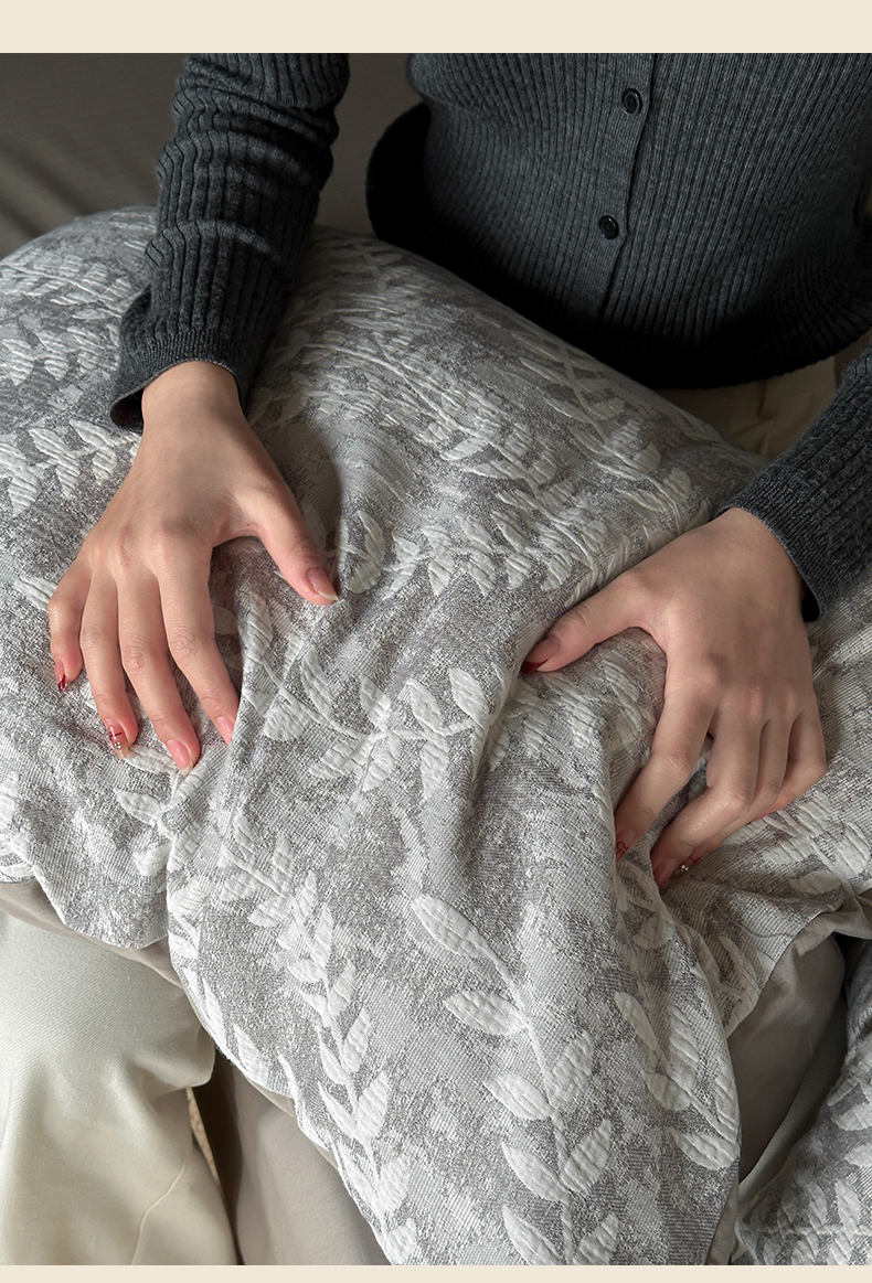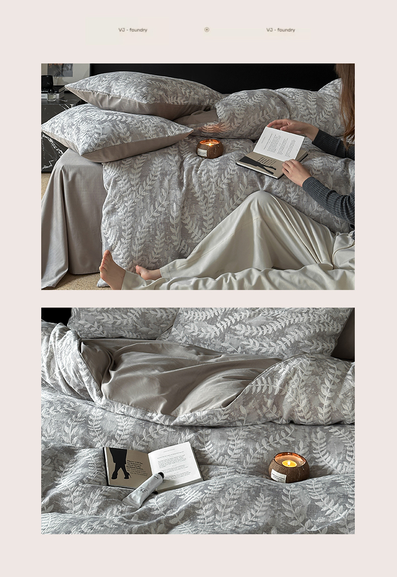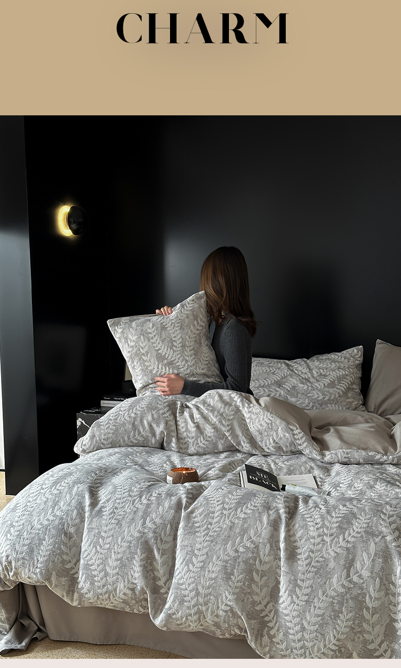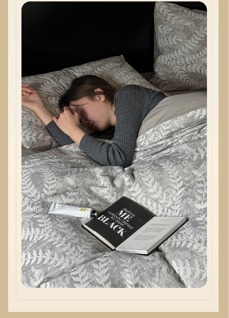 名品优仓 全棉水洗棉三层纱提花系列四件套-春意怏然 春意怏然-灰