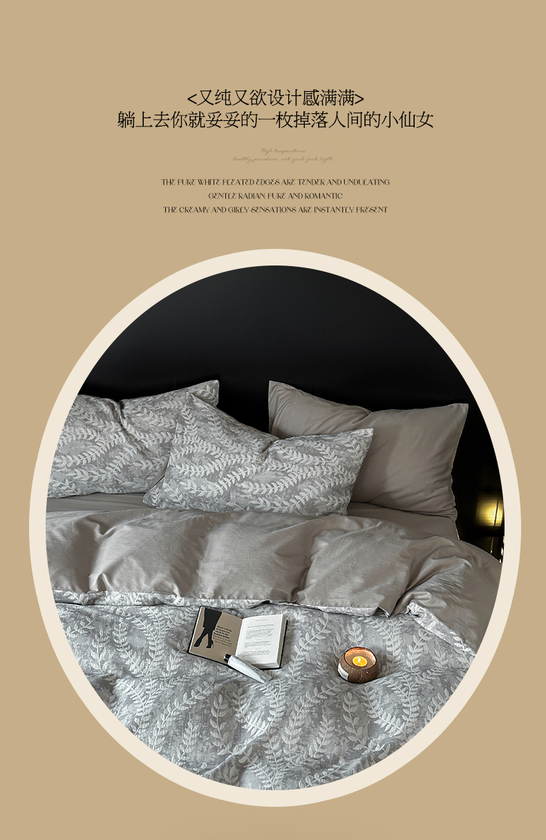 商品名称:名品优仓 全棉水洗棉三层纱提花系列四件套-春意怏然 春意怏然-灰
