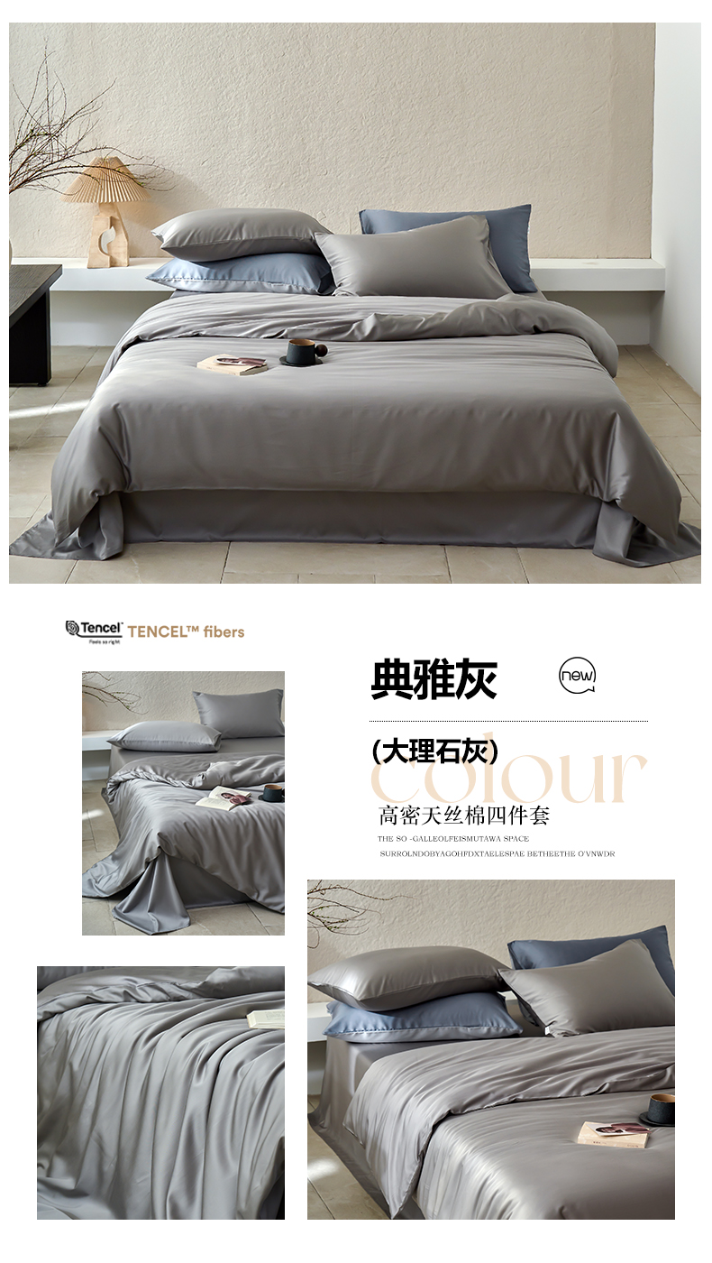 当前位置: 91家纺网 > 商品网购 > 床品套件 > 四件套 > 莱赛尔四件套 > 沐晴2024新款春夏60兰精天丝简约轻奢纯色长绒棉四件套 典雅灰(大理石灰)