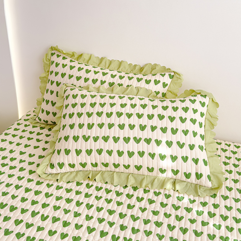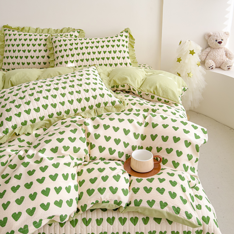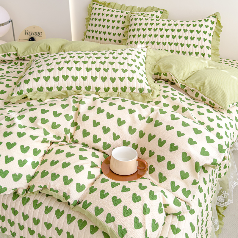(总)雅眠居 2025爆款针织棉双层纱印花床盖四件套,爱心粉,爱心绿,半夏,蝶恋,粉格蝴蝶结,灰韵,蓝格蝴蝶结,玫瑰庄园,蔷薇,甜心,香草绿,幽幽花香,郁金香,蝴蝶印记,奶油波点,五叶花