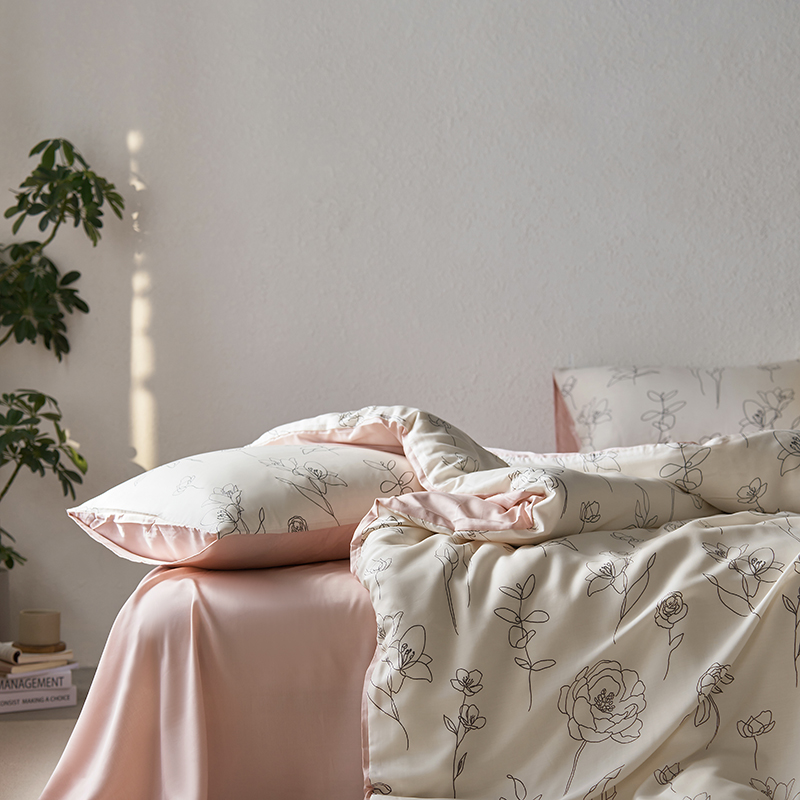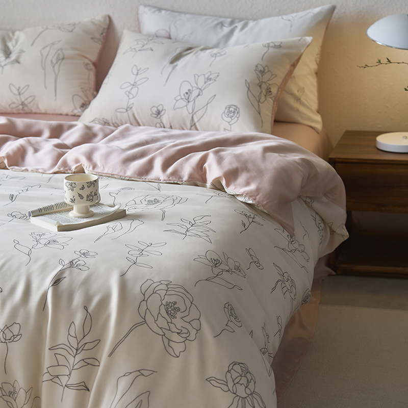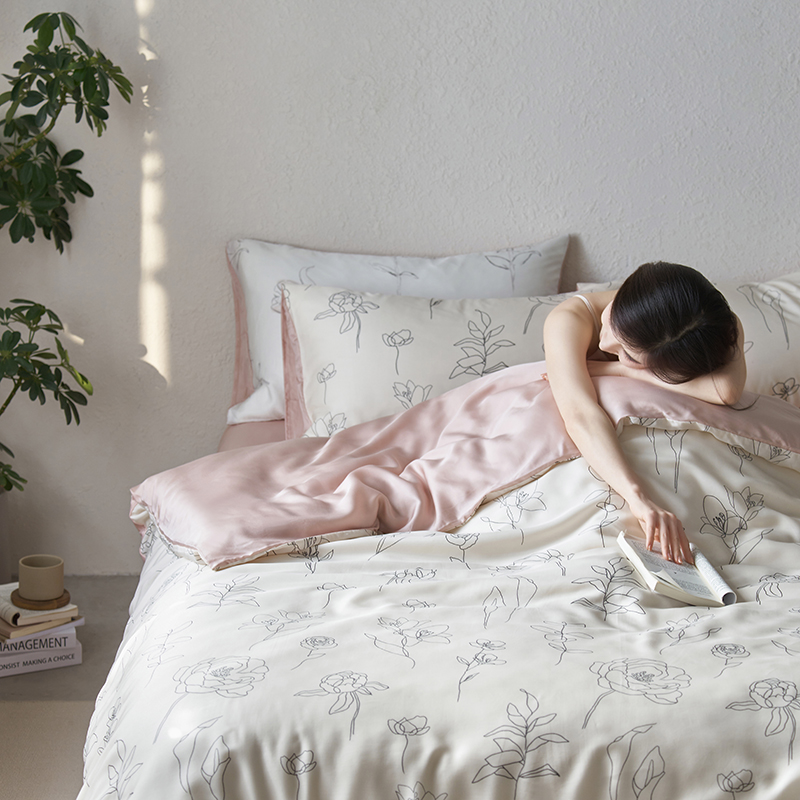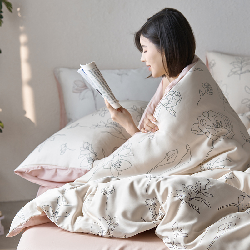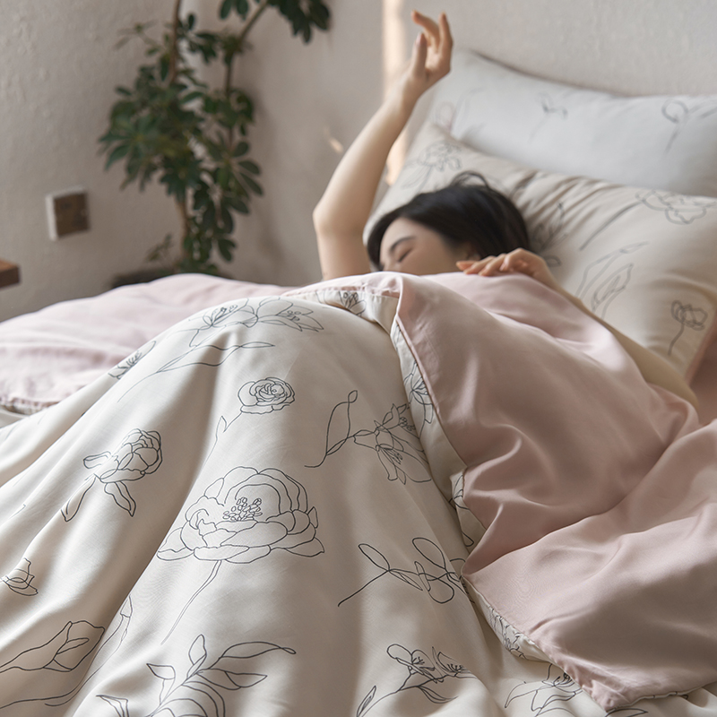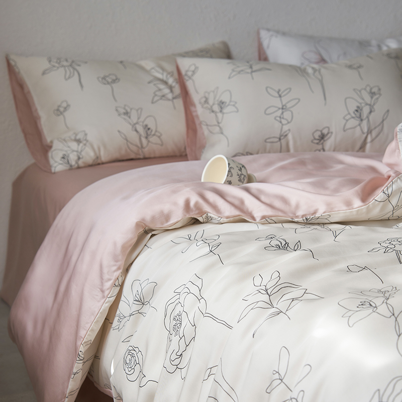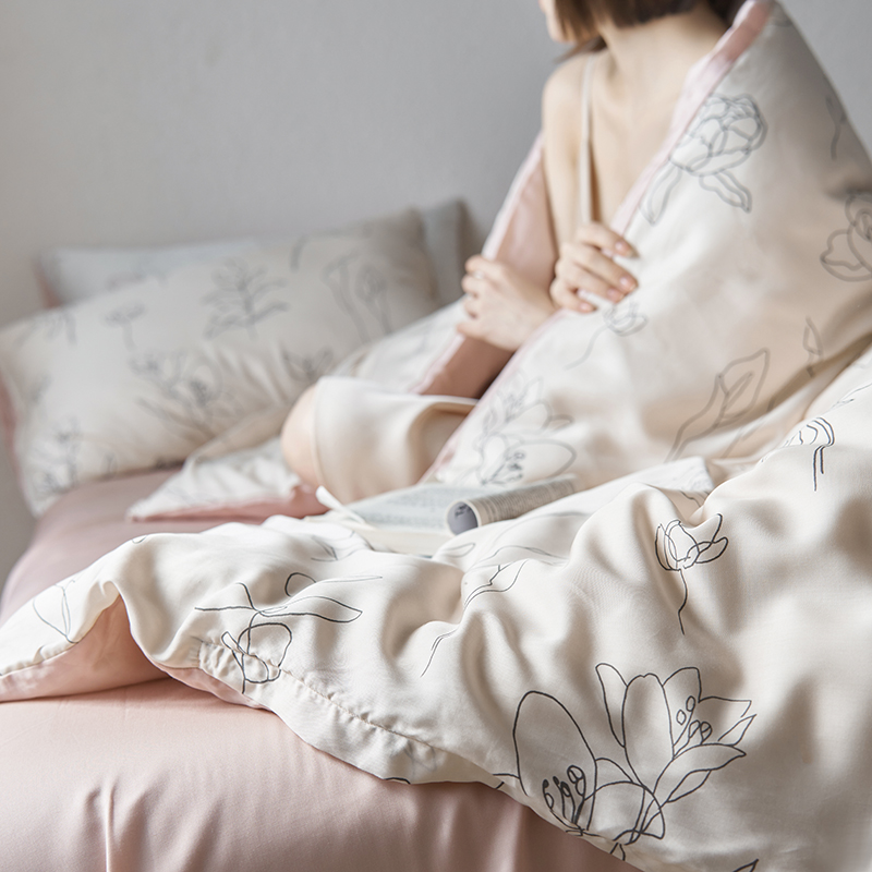 时年家纺 2024春夏新品莱赛尔天丝印花四件套 菲青