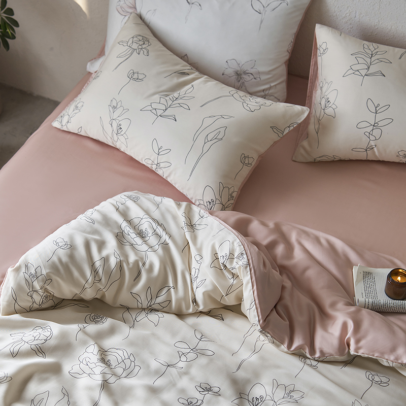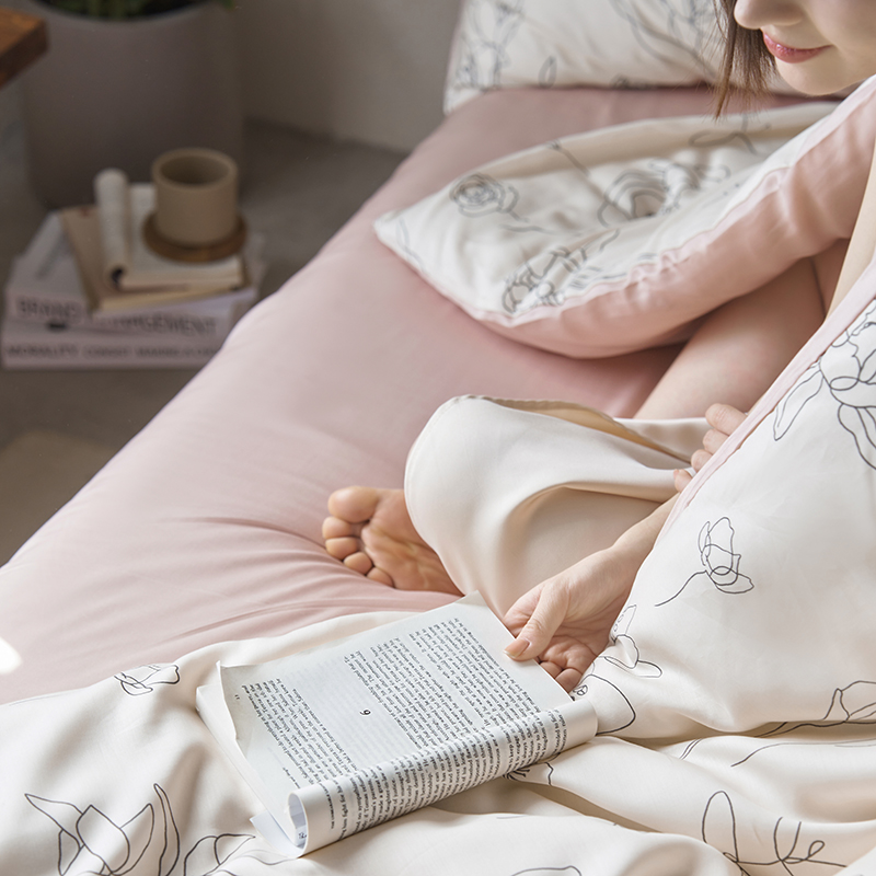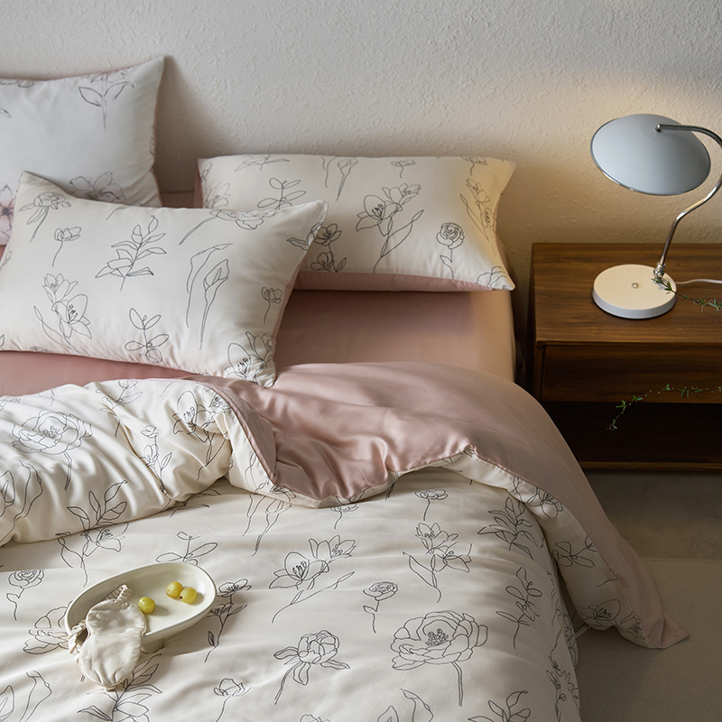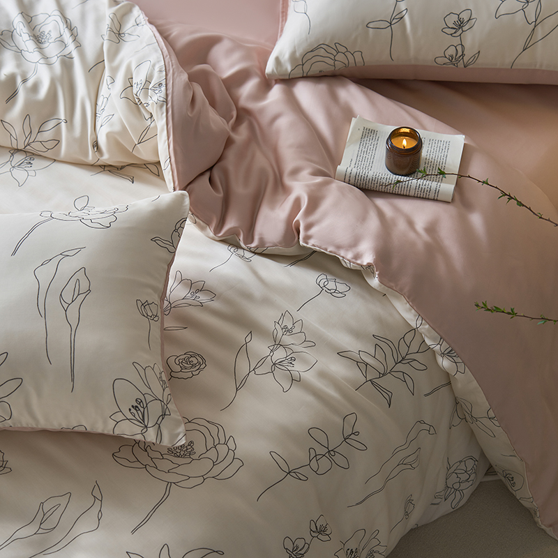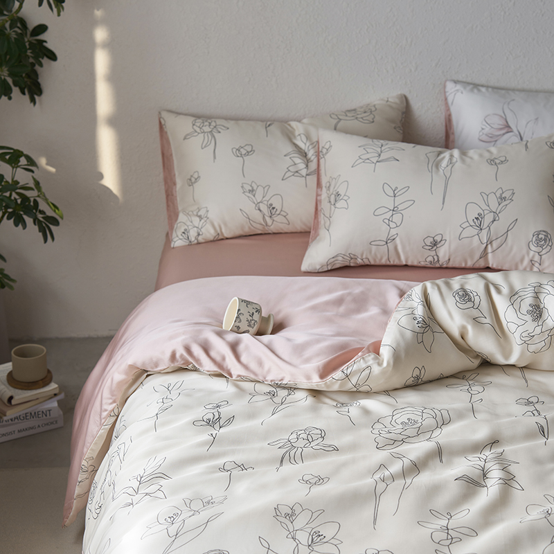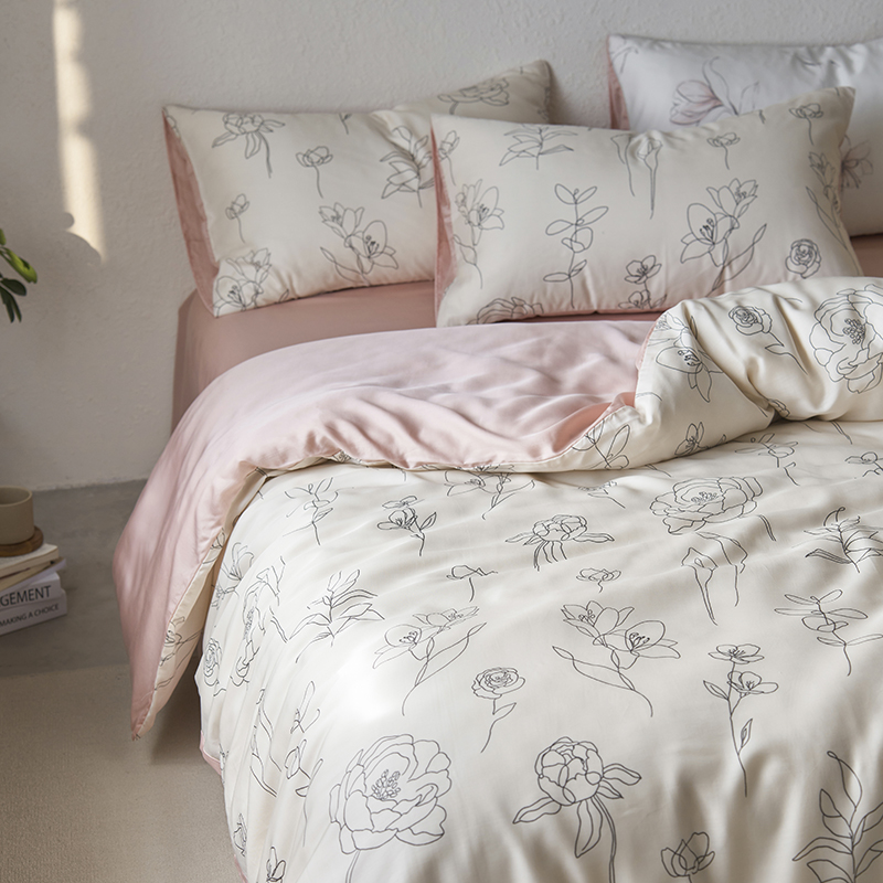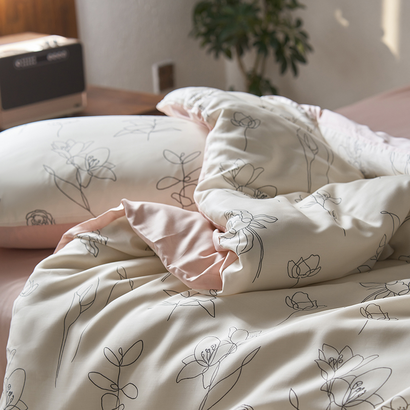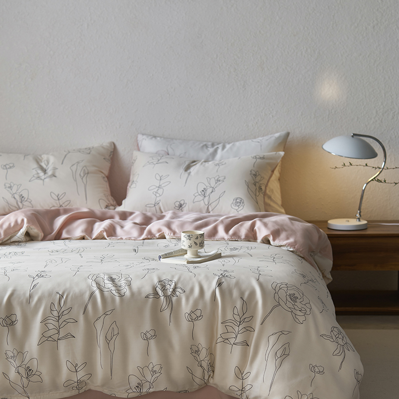 时年家纺 2024春夏新品莱赛尔天丝印花四件套 菲青
