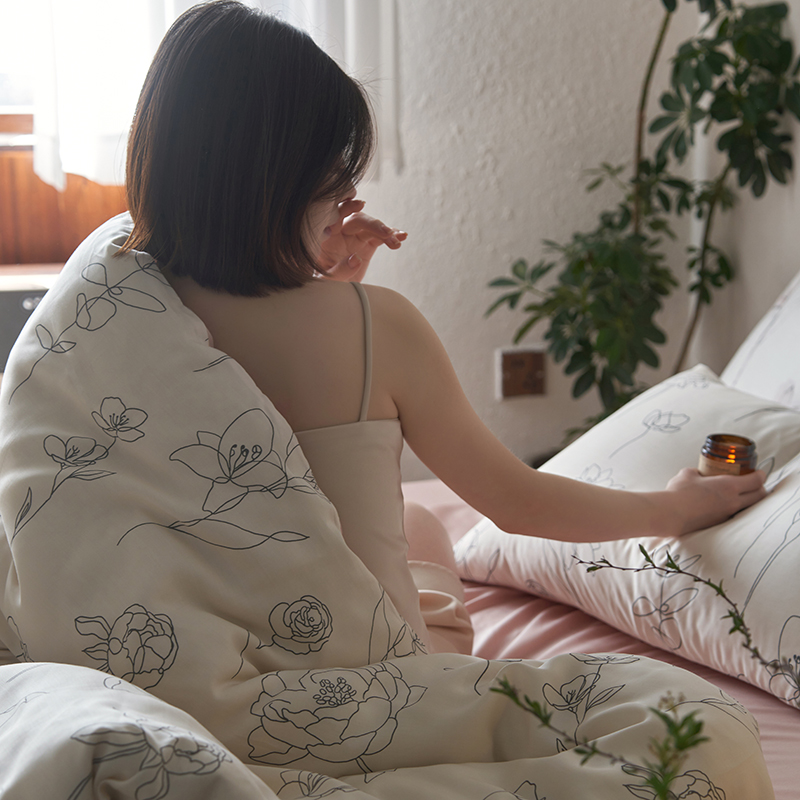 (总)时年家纺 2025新款全棉有氧双层纱系列套件 充值会员优惠5元/套,春日,清辞