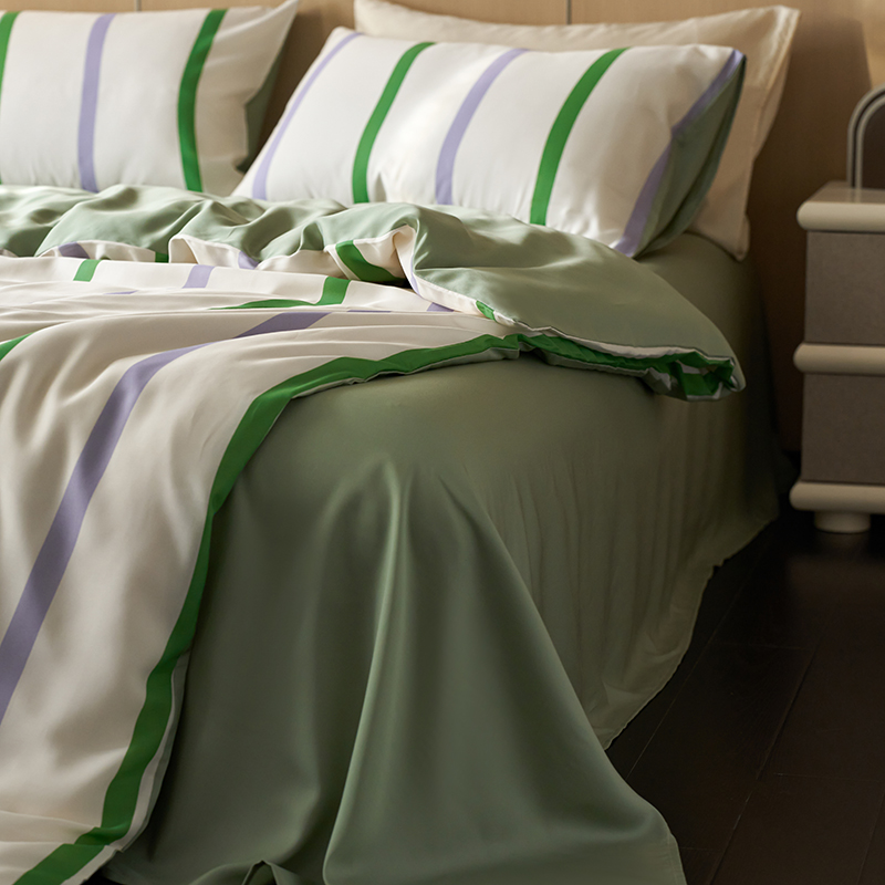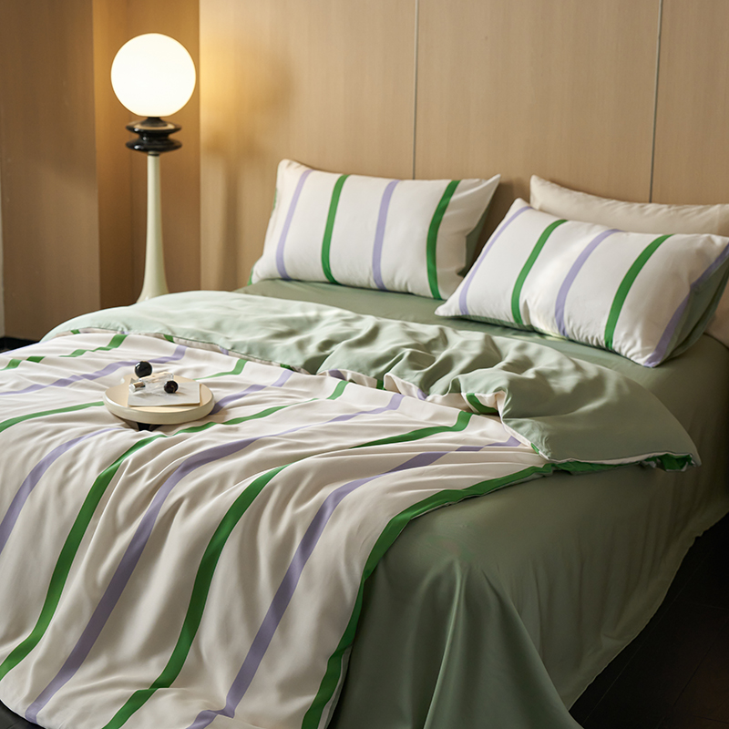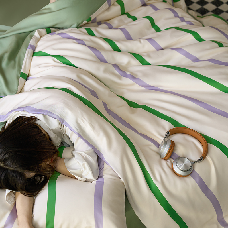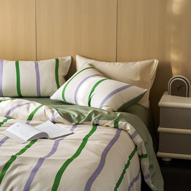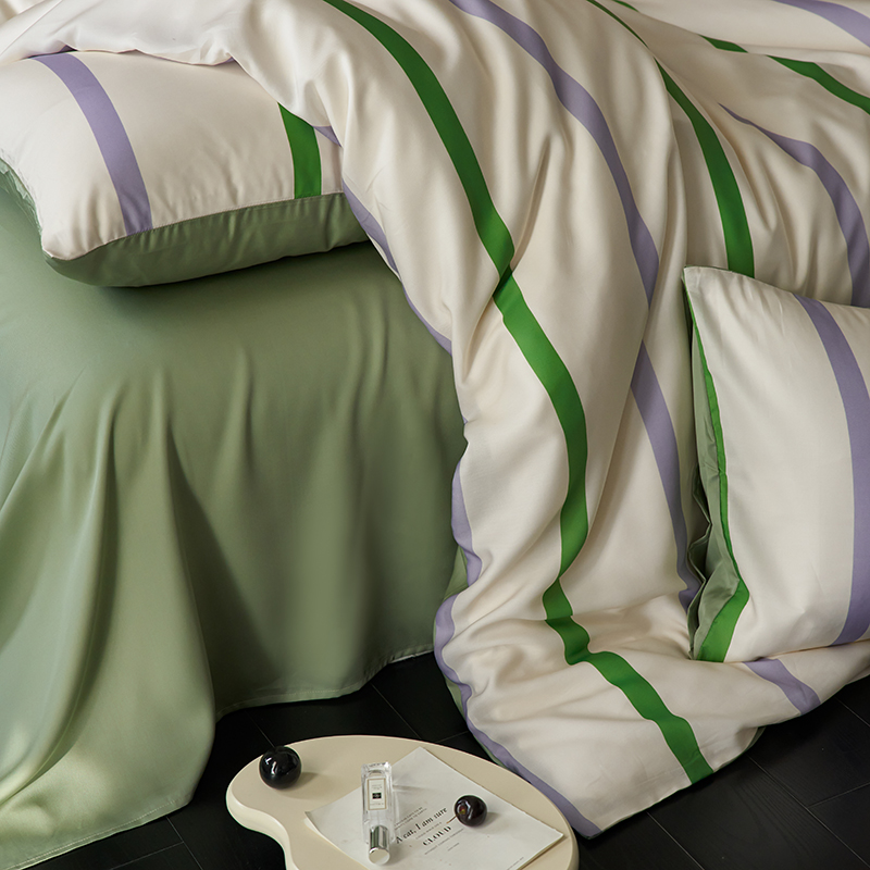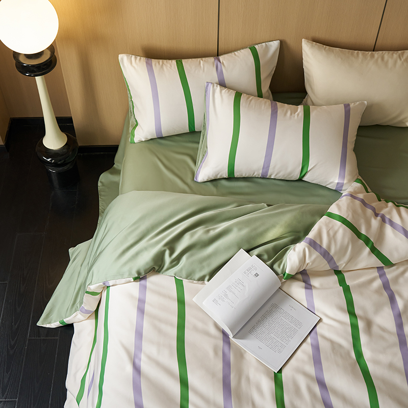 时年 2022新款全棉40支13372ins条纹款四件套 复古奶绿,复古奶绿