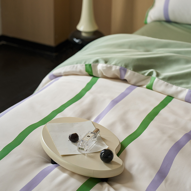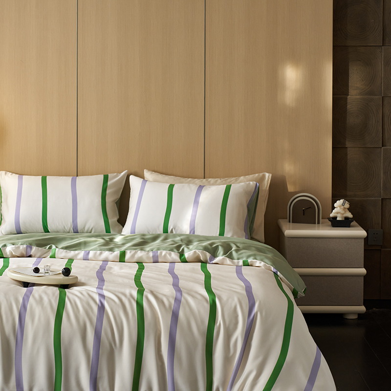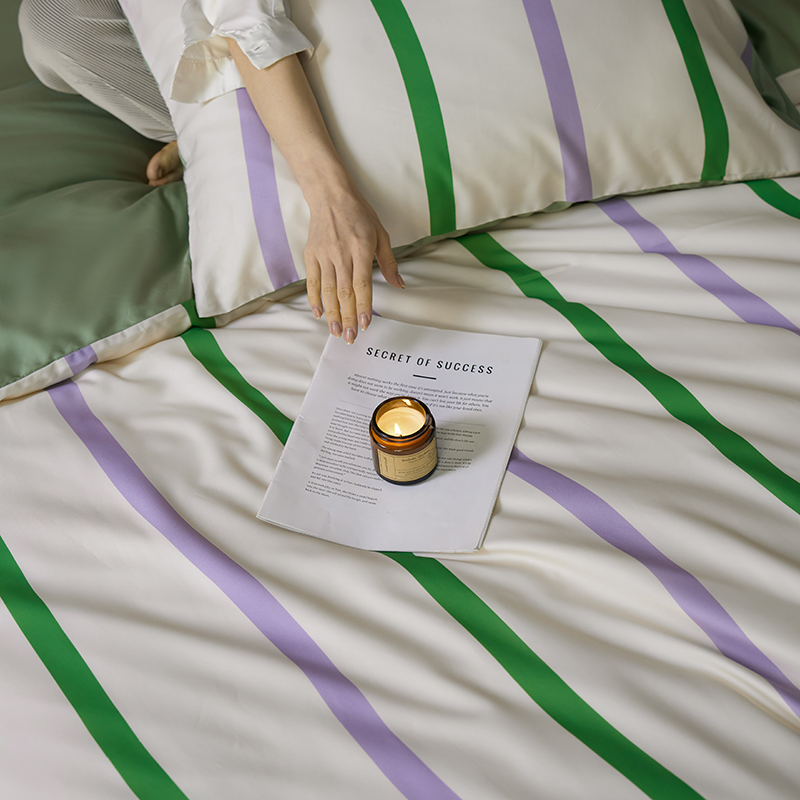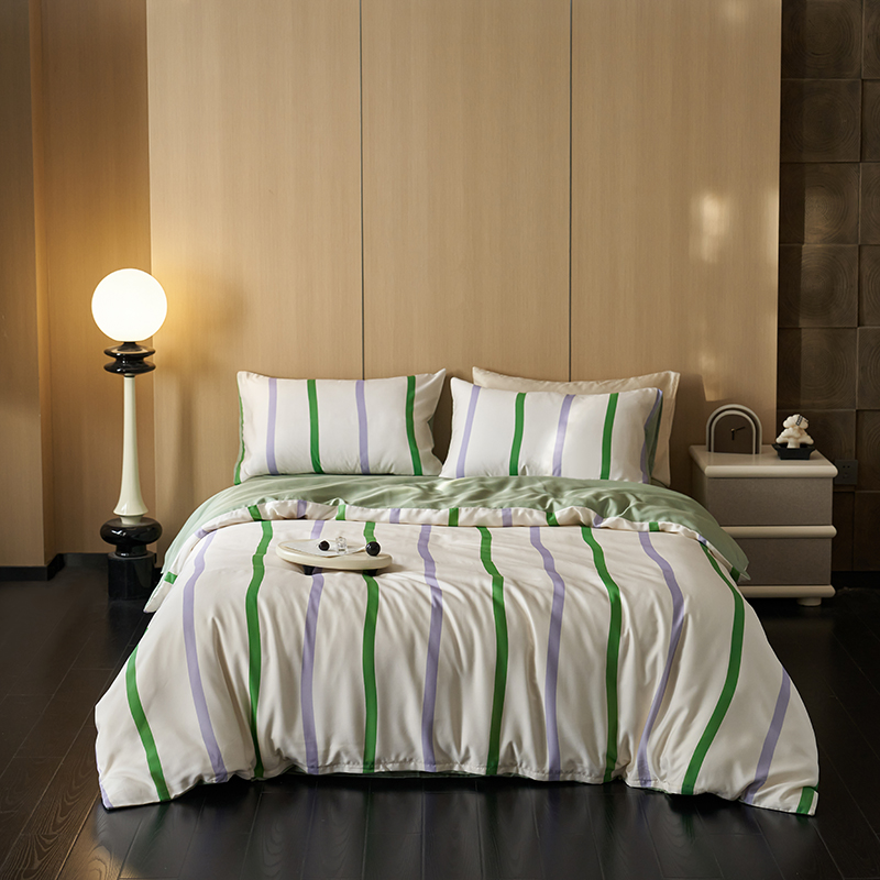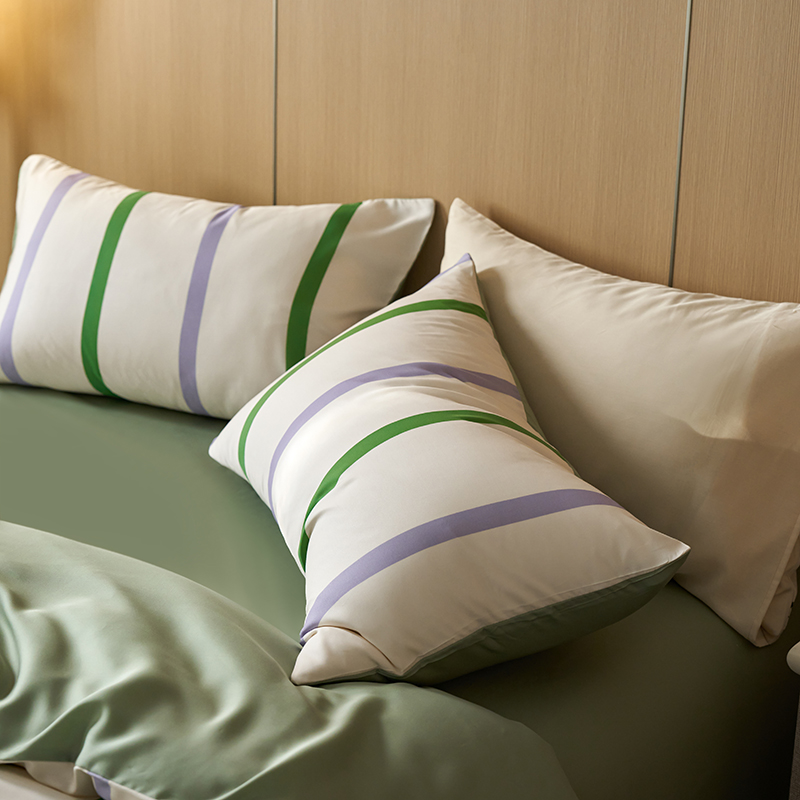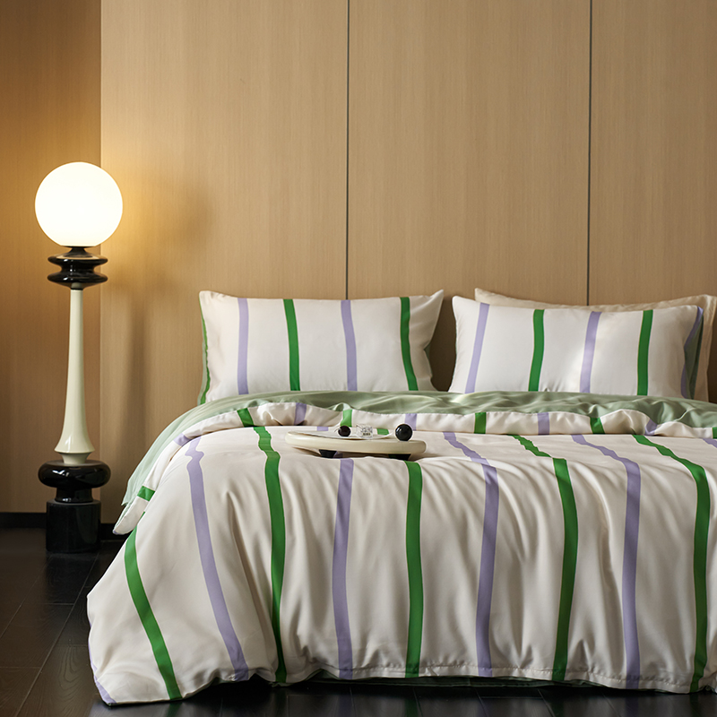 时年 2022新款全棉40支13372ins条纹款四件套 复古奶绿,复古奶绿
