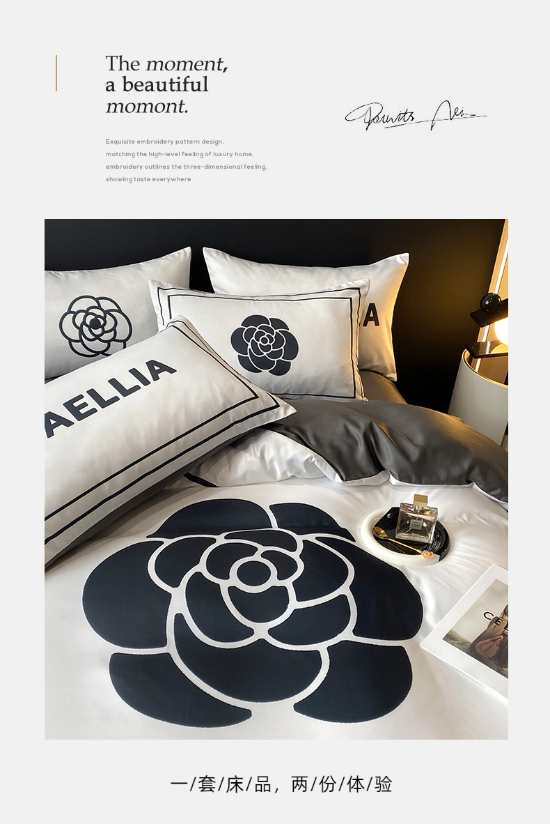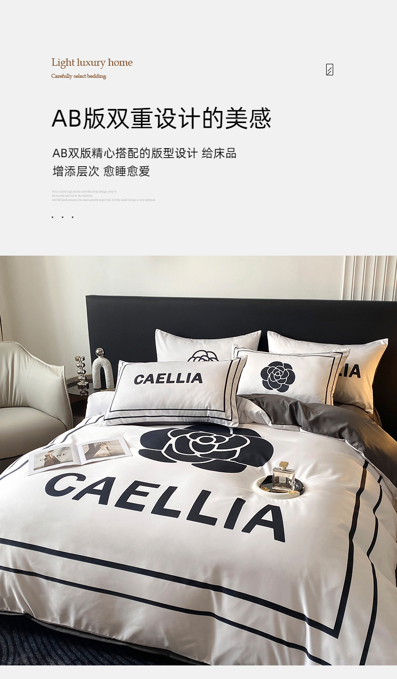 (总)色鬼布艺高端家居主号 2025新款轻奢亲肤纯棉数码印花网红热款四件套,豹纹香,白金V,白香花,大H,黑白迪,黑白V,灰迪,咖古,克莱因,慕斯小姐,山茶花,星空