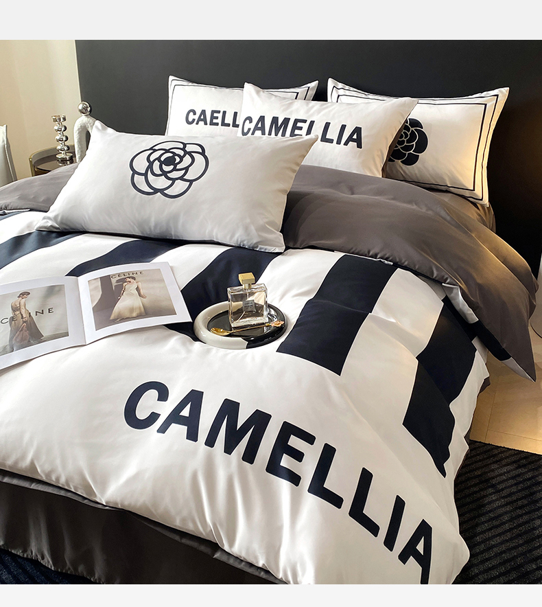 (总)色鬼布艺高端家居主号 2025新款轻奢亲肤纯棉数码印花网红热款四件套,豹纹香,白金V,白香花,大H,黑白迪,黑白V,灰迪,咖古,克莱因,慕斯小姐,山茶花,星空