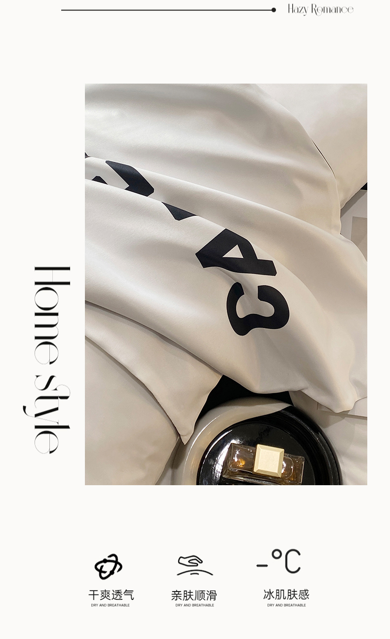 色鬼布艺 2024新款冰丝四件套水洗真丝四件套 黑白音符