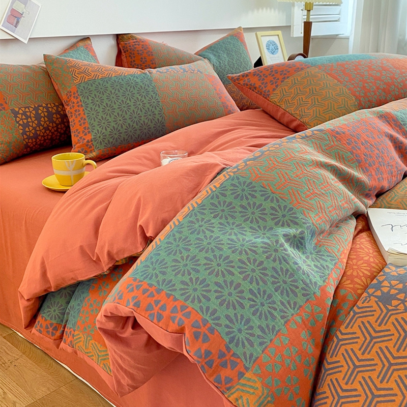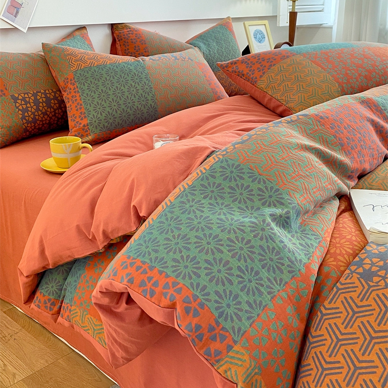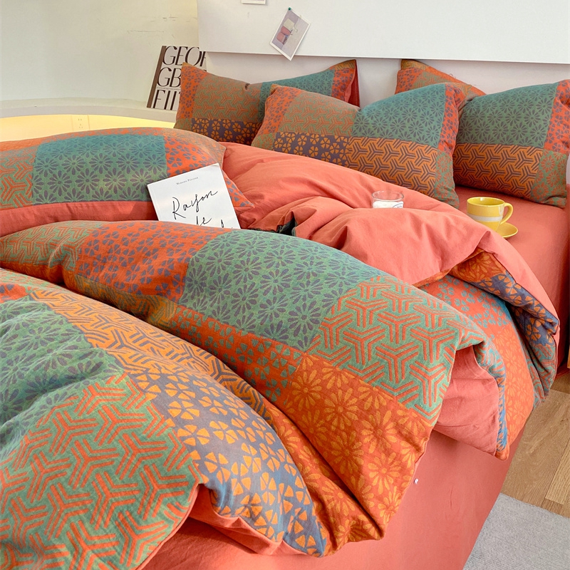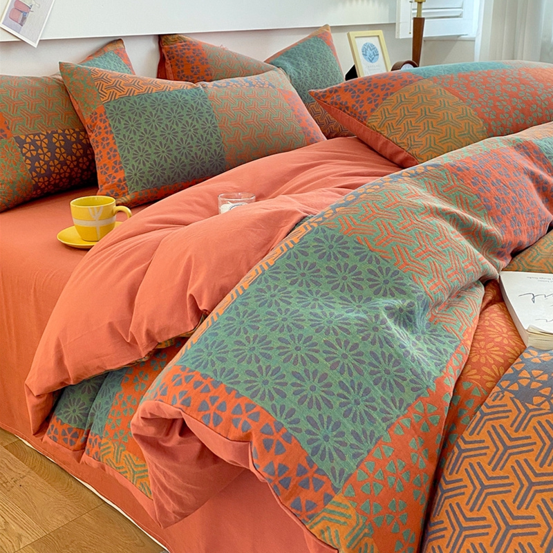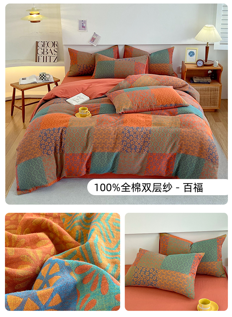 商品名称:2024新款全棉纯棉双层纱三层纱立体提花四件套 百福