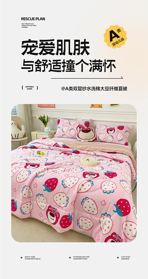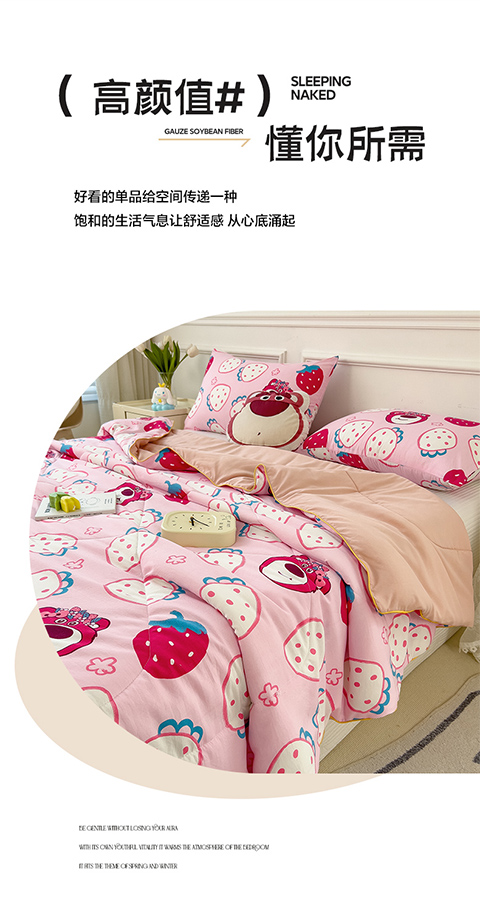 商品名称:网客家纺 2024新款双层纱水洗印花夏被 草莓熊