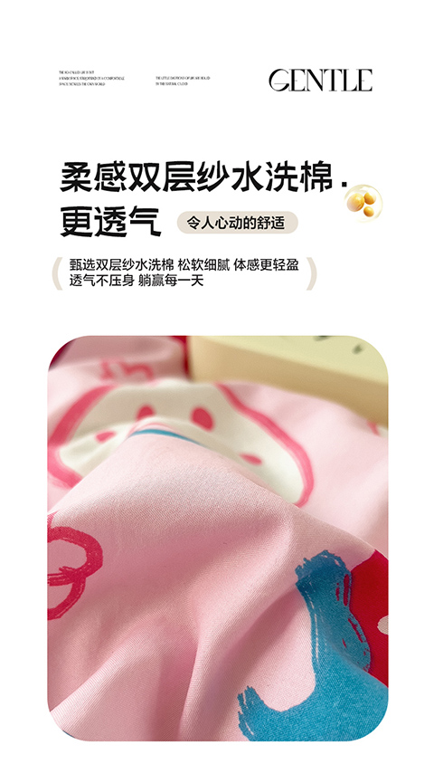 网客家纺 2024新款双层纱水洗印花夏被 草莓熊