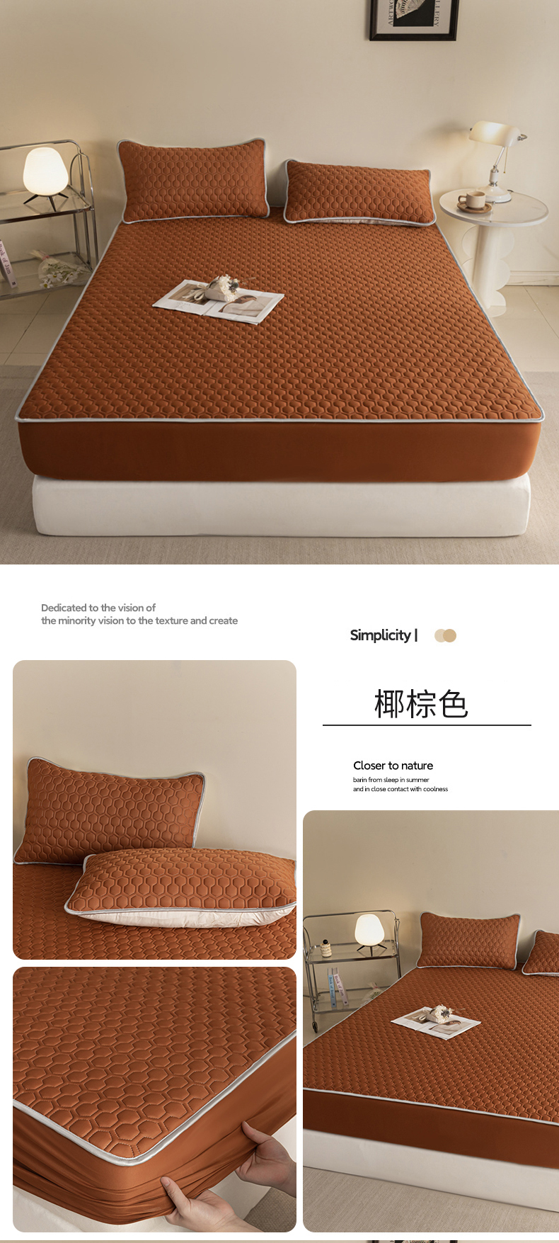 商品名称:欧邦 新款纯色A类凉感丝乳胶床笠三件套 椰棕色