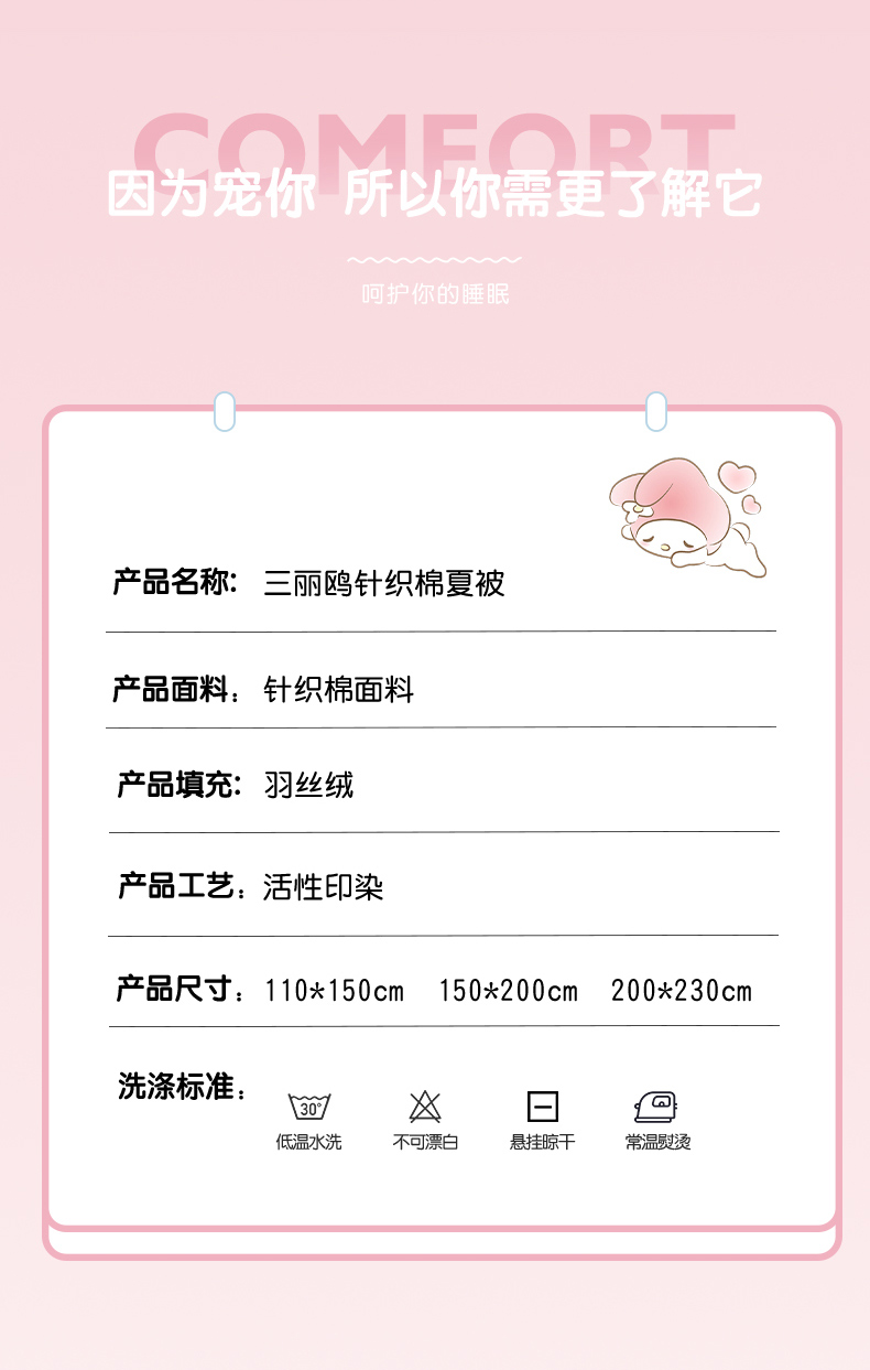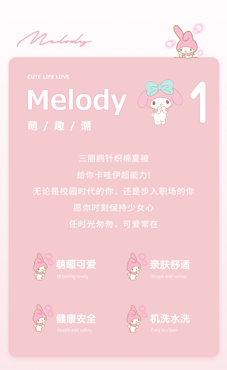 商品名称:DS-2025新款儿童卡通三丽鸥正版授权A类针织棉夏被系列 粉格美乐蒂