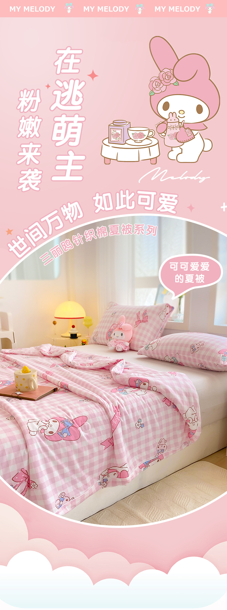 DS-2025新款儿童卡通三丽鸥正版授权A类针织棉夏被系列 粉格美乐蒂