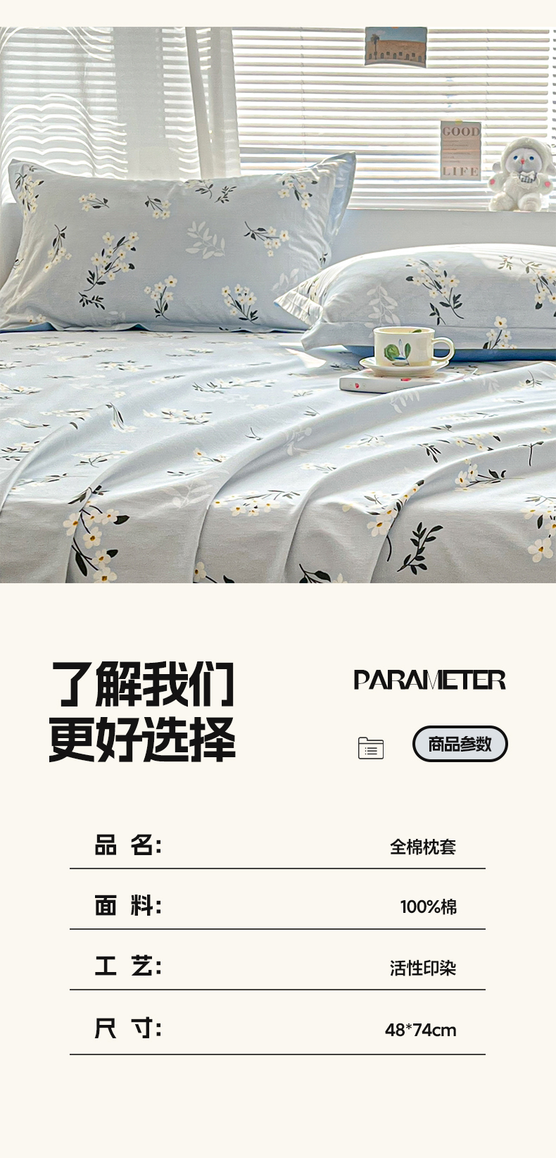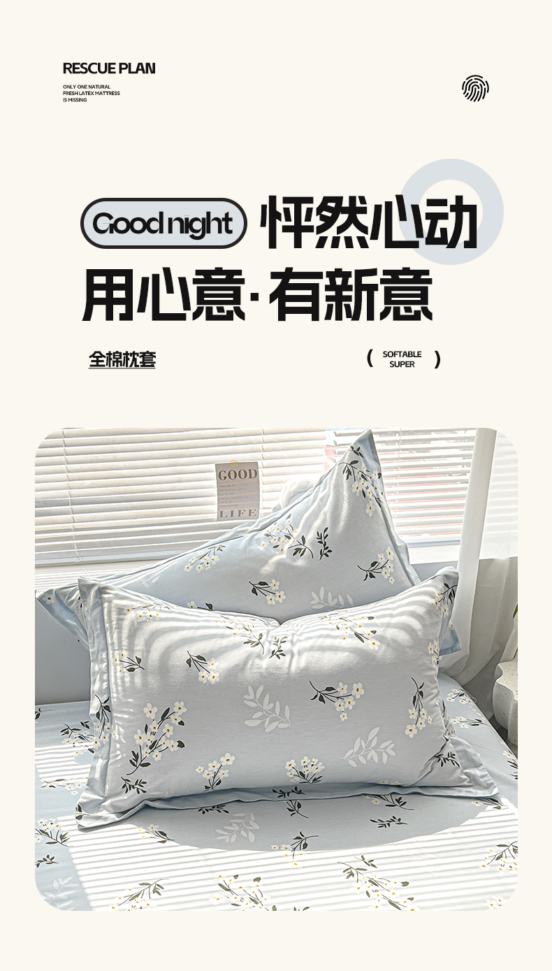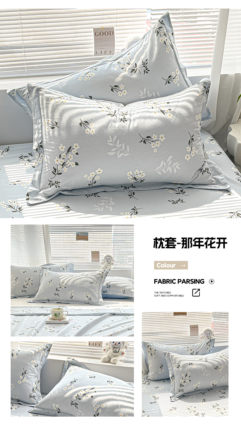商品名称:涵宸家纺 2024新款全棉小清新印花单品套件--单枕套 枕套-那年花开