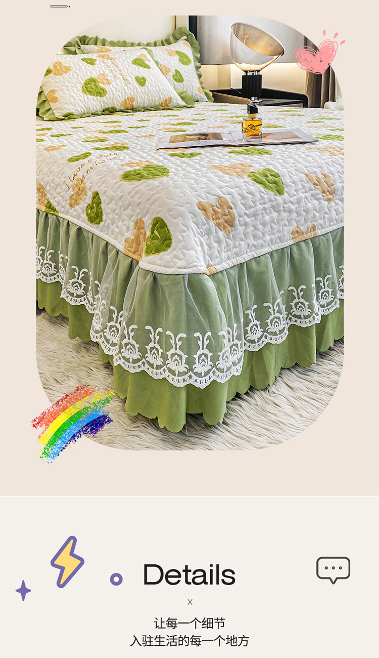 漫布云2025秋冬新款11斤230g全消光牛奶绒夹棉床盖款四件套纯色蕾丝花边刺绣床裙款床盖,蝶恋花-梦幻紫, 蝶恋花-嫩黄 ,蝶恋花-新芽绿, 蝶恋花-婴儿蓝, 蝶恋花-樱花粉