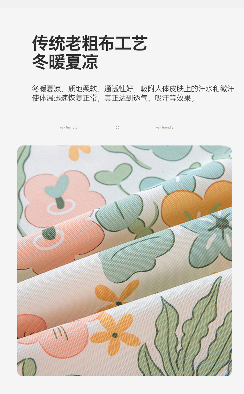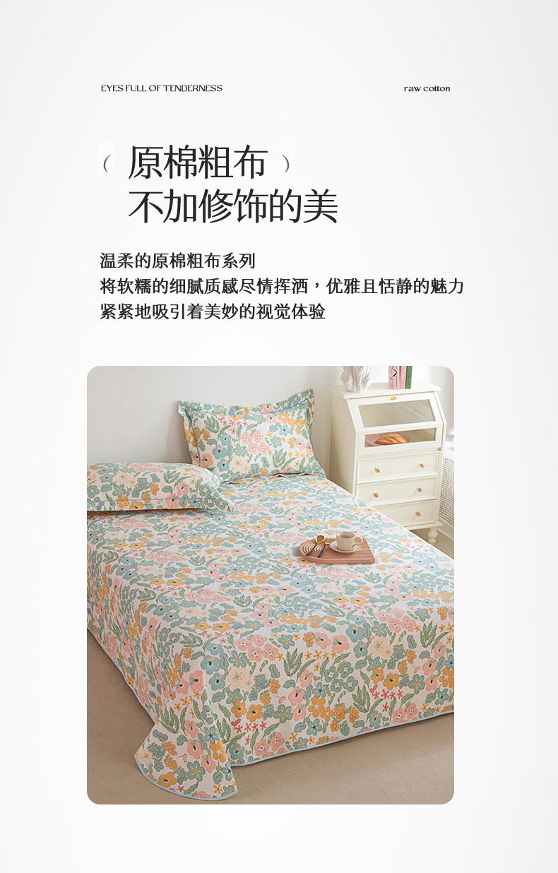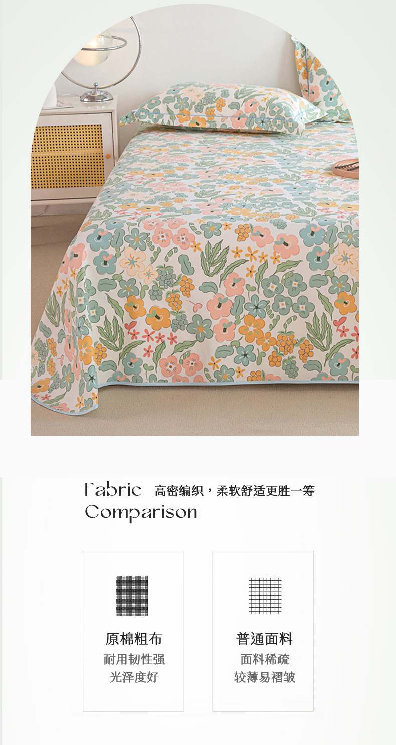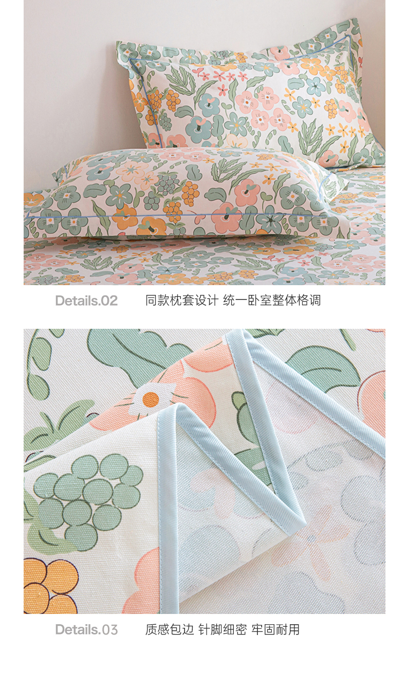 商品名称:金泰莱 2025新款原棉全棉老粗布凉席三件套全棉床单纯棉床单软凉席 春意盎然