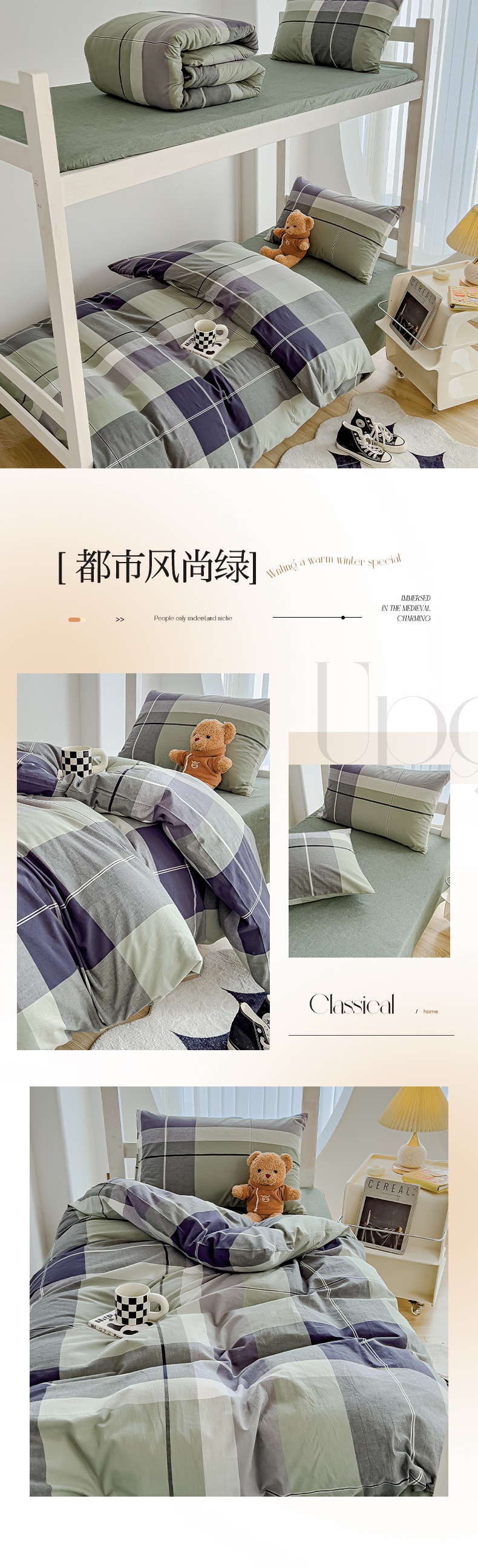 久典家居 2024新款A类全棉学生款三件套 都市风尚绿