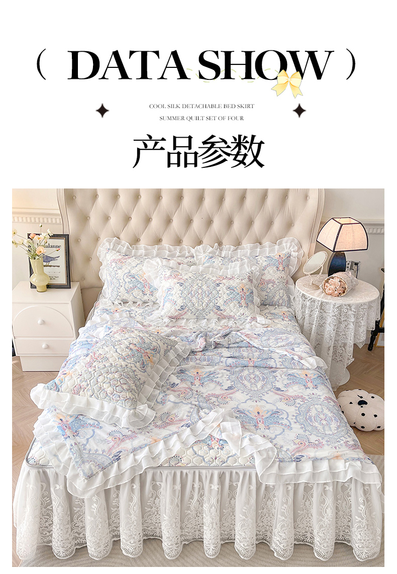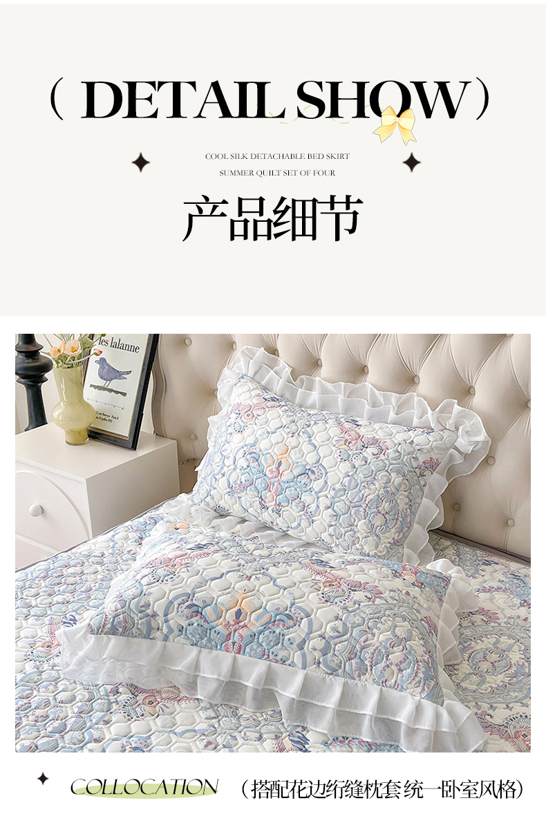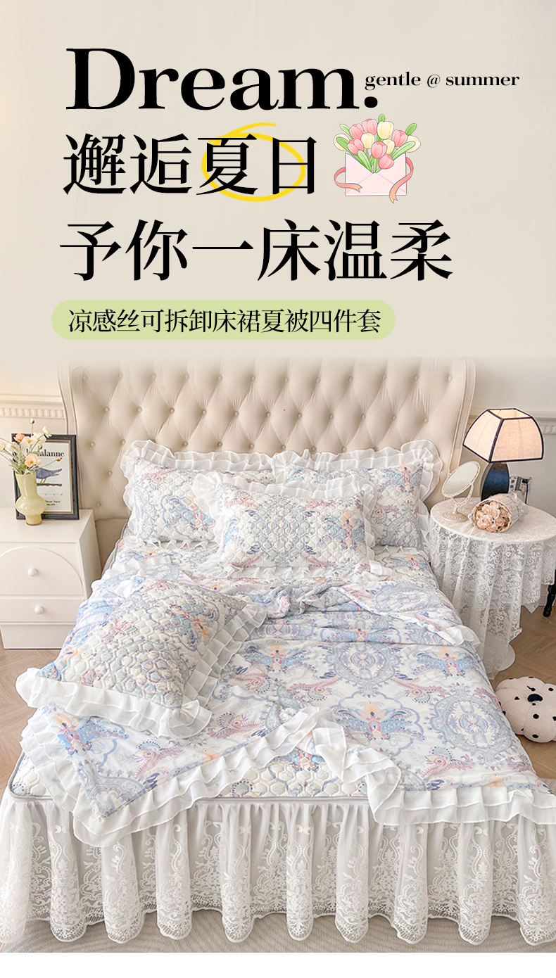 (总)虹星家纺 2024新款凉感丝印花可拆床裙套件-夏被凉席四件套,初禾绿,仙女粉,三叶星草,叶语浪漫,天空蓝,悠情假日,月光灰,柔丝曼舞,梦境幻影,欧式雅韵,繁花集序,罗马之恋,花花梦境,花语自然,迷幻时空,静悠香阁