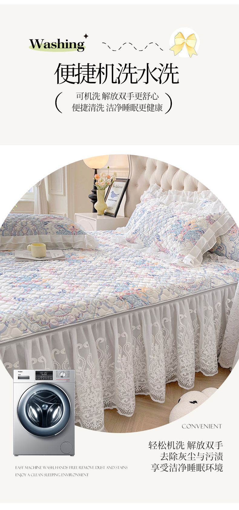 (总)虹星家纺 2024新款A类水洗棉四季款床裙系列套件-单床裙,湖水绿,抹茶绿,时尚灰,天空蓝,香妃玉,香蕉黄,香芋紫,樱花粉,云朵白