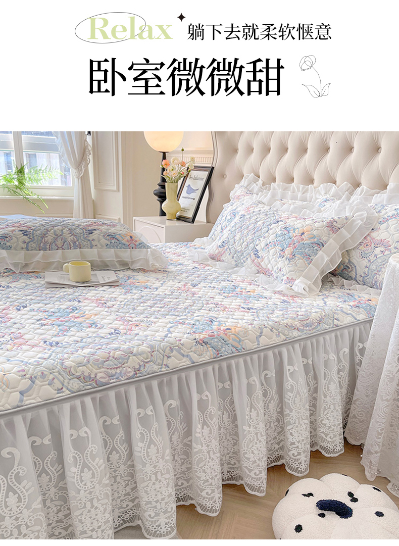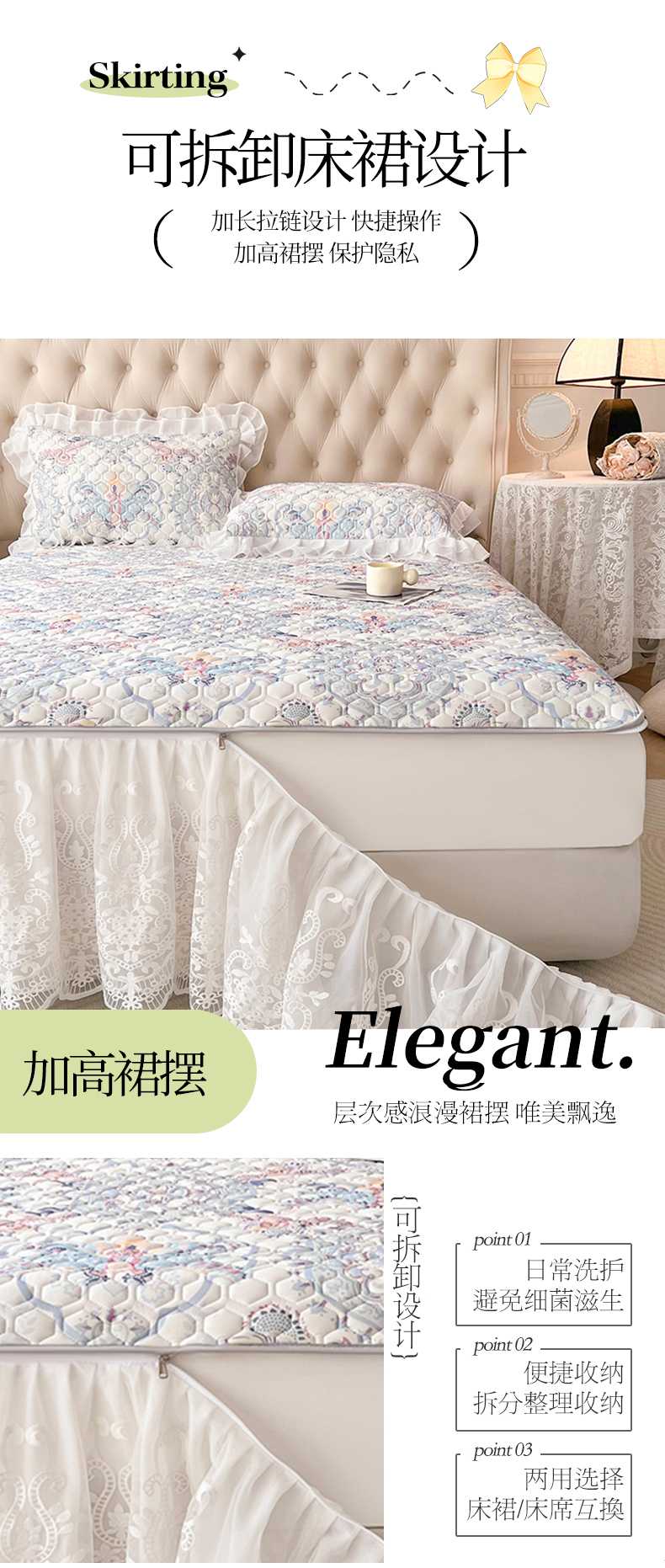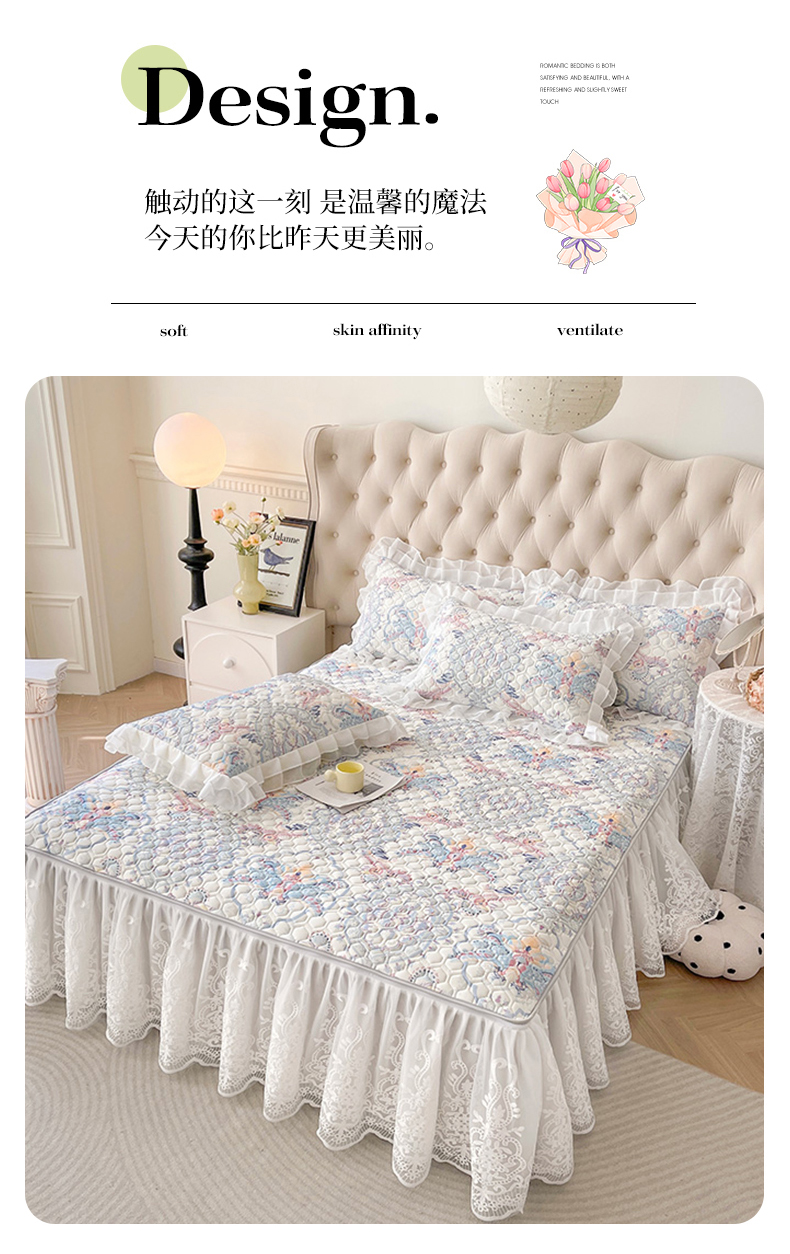 (总)虹星家纺 2025新款A类冰感凉豆豆床裙席三件套-素夏,素夏-抹茶绿,素夏-蜜桃粉,素夏-青果绿,素夏-天空蓝,素夏-月光灰