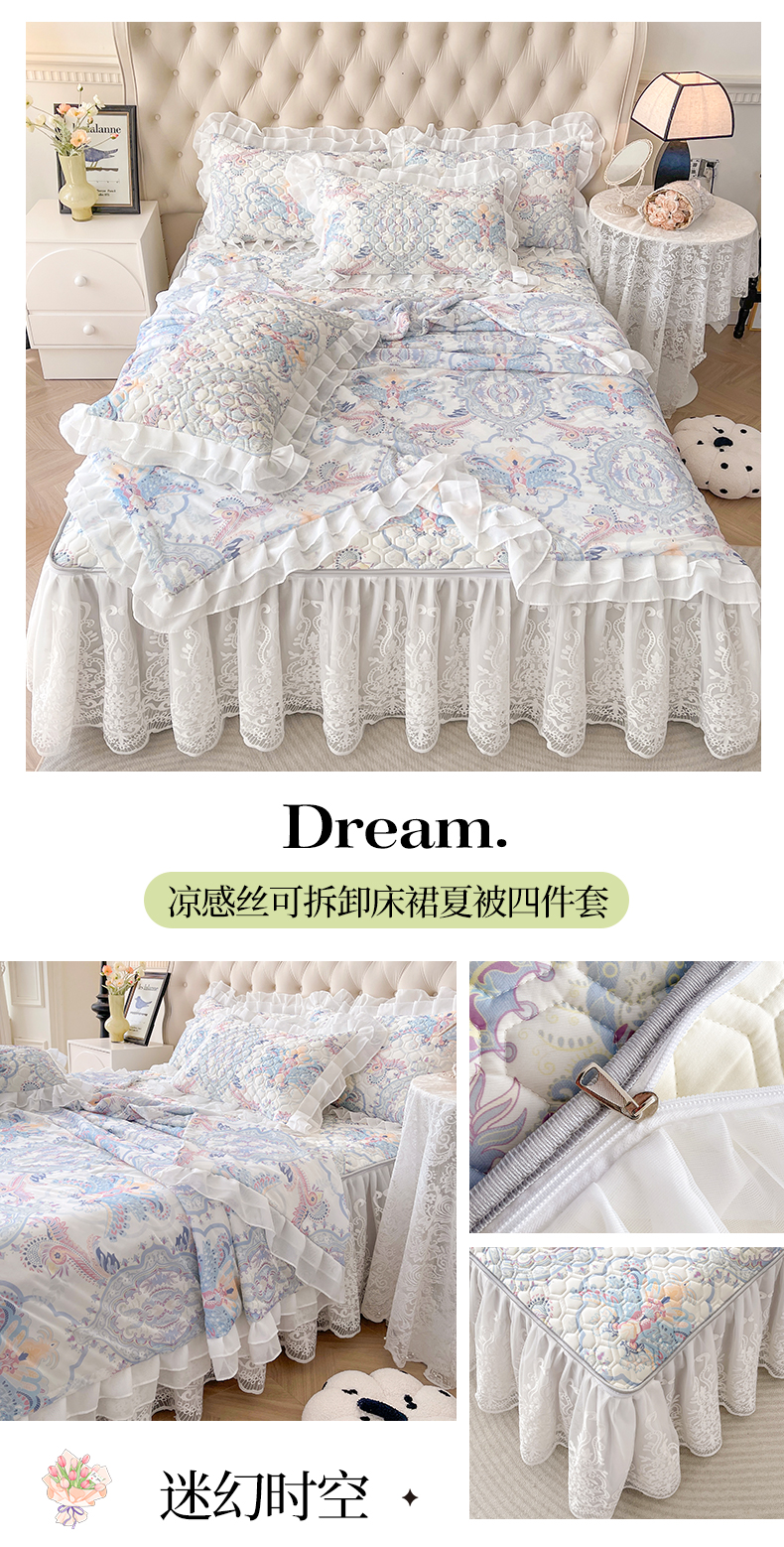 商品名称:虹星家纺 2024新款凉感丝印花可拆床裙套件-夏被凉席四件套 迷幻时空
