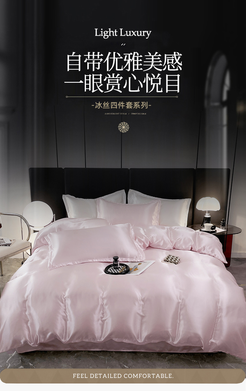 当前位置: 91家纺网 > 商品网购 > 床品套件 > 四件套 > 其它四件套 > 梦舒羽 2025新款可水洗冰丝被套床单枕套夏季四件套 淡雅玉