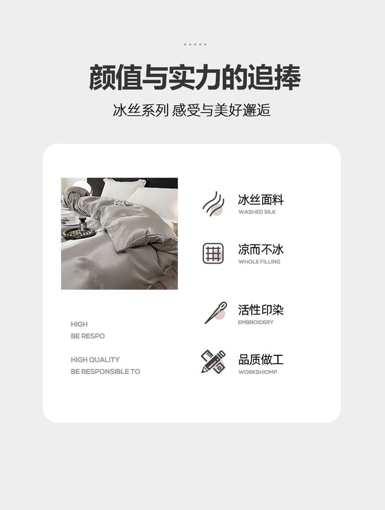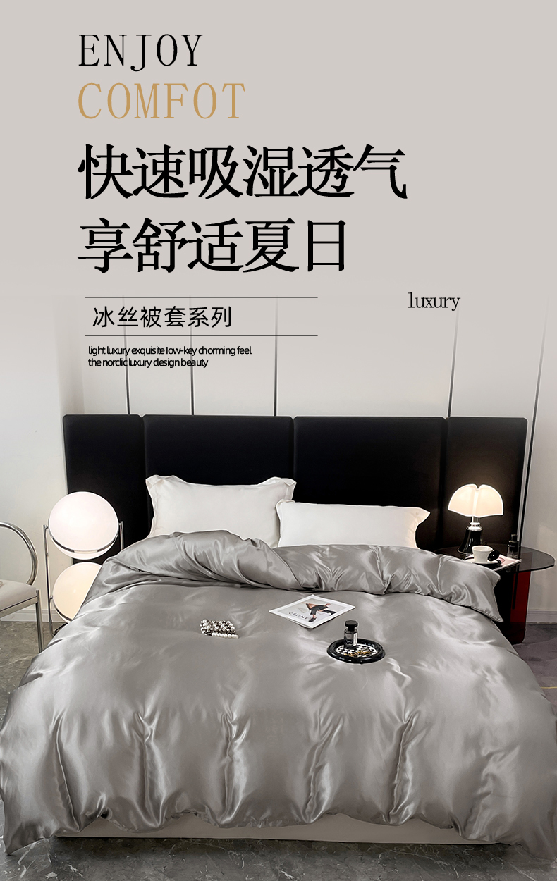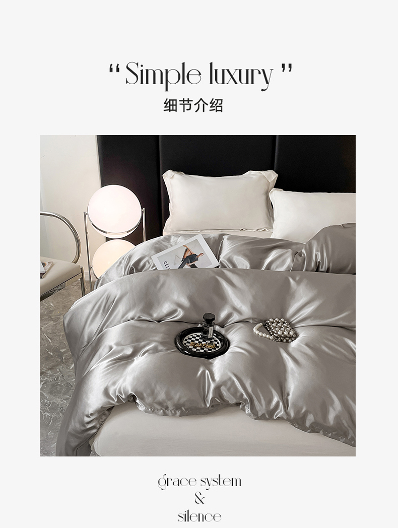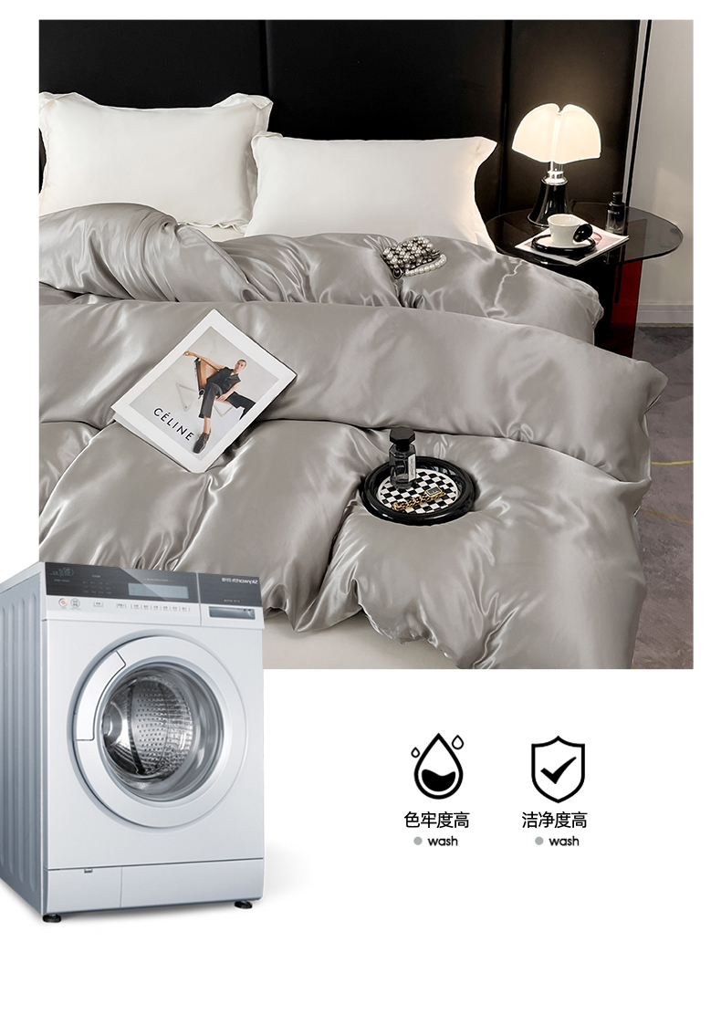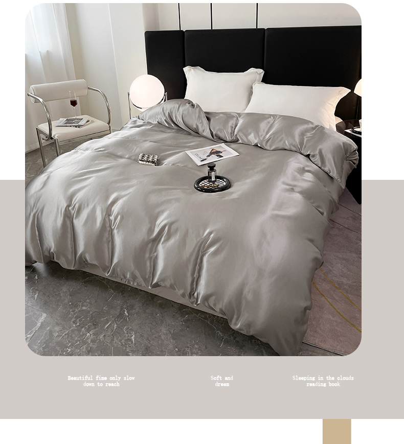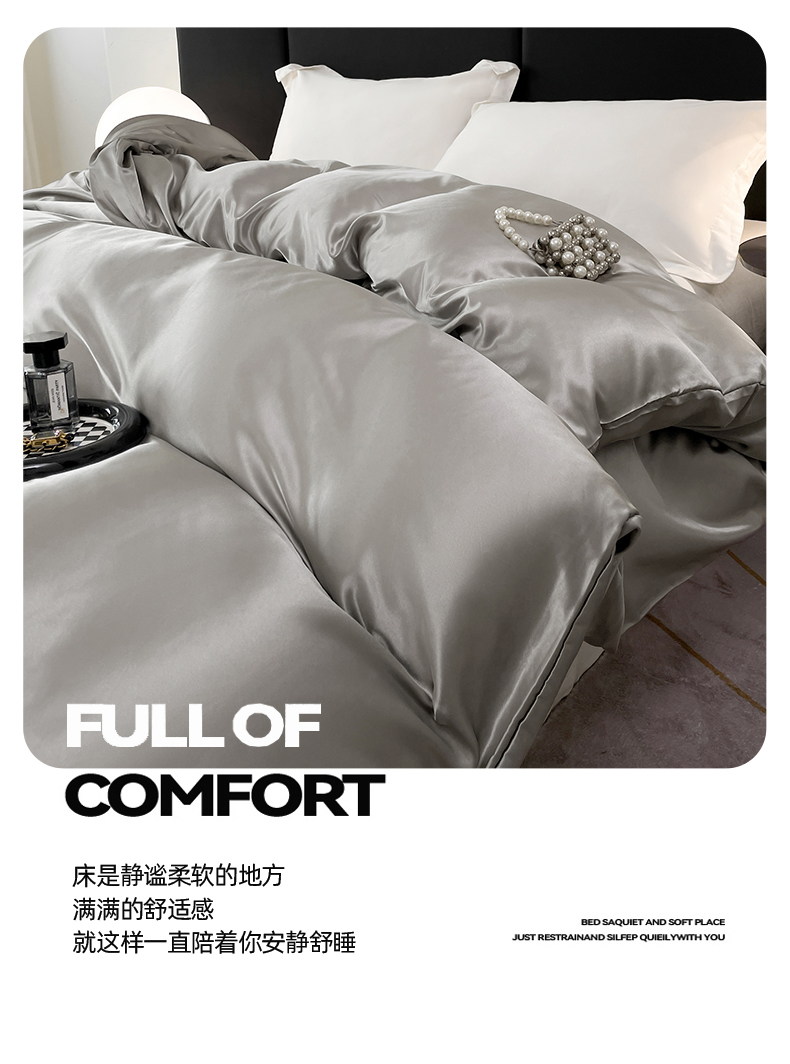 • 91家纺网 家纺一手货源 找家纺 梦舒羽 2025新款可水洗冰丝被套双人床被套带同款床单床笠四件套 典雅灰