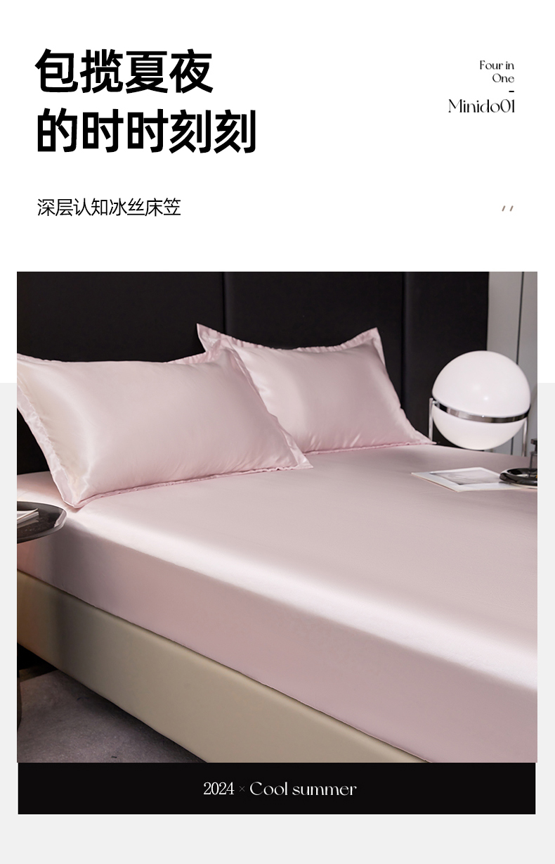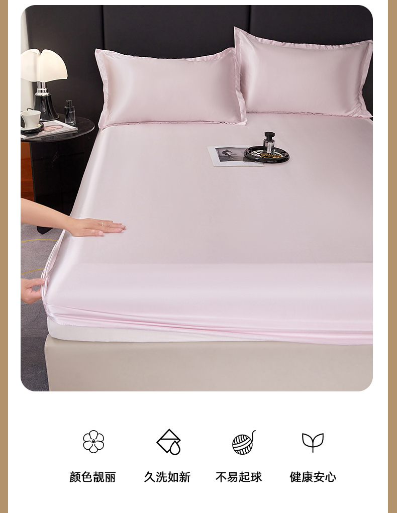 商品名称:梦舒羽 2025新款可水洗冰丝床垫保护套床笠三件套 淡雅玉