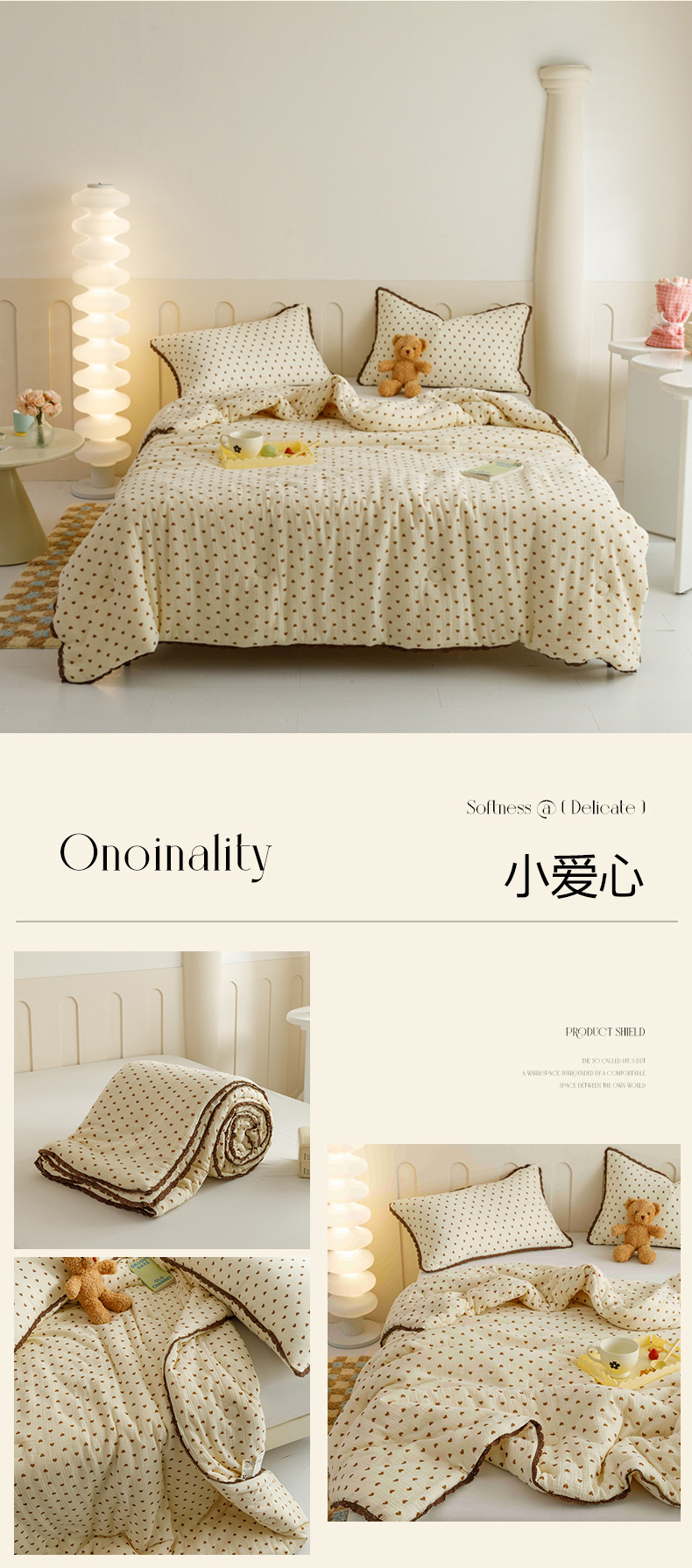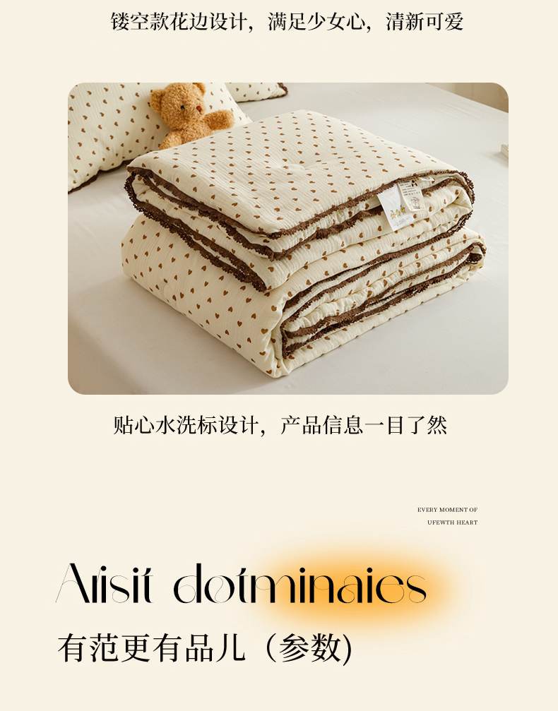 商品名称:优被业 2025新款全棉双层纱皱皱纱夏被 小爱心