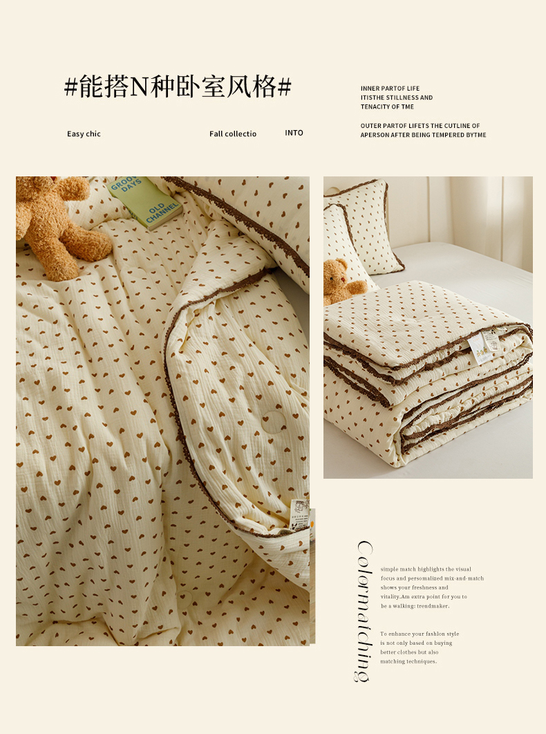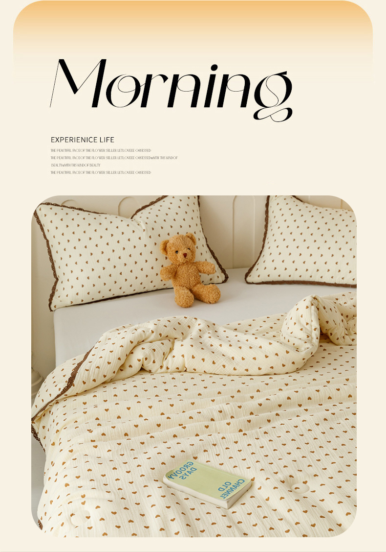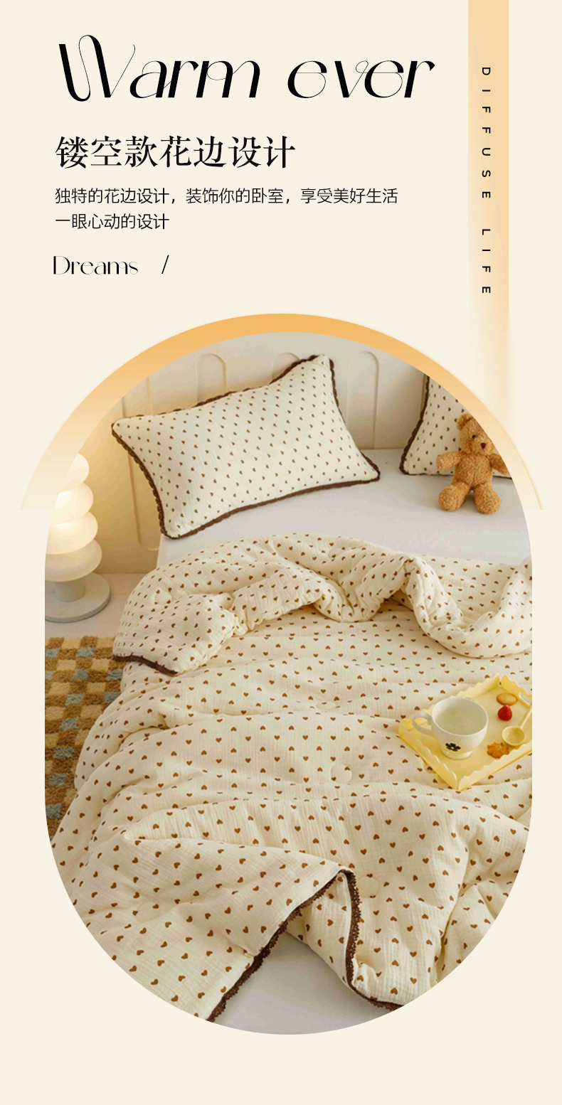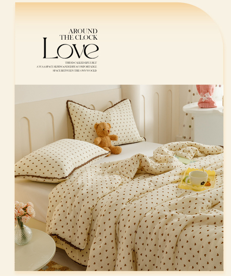 优被业 2025新款全棉双层纱皱皱纱夏被 小爱心