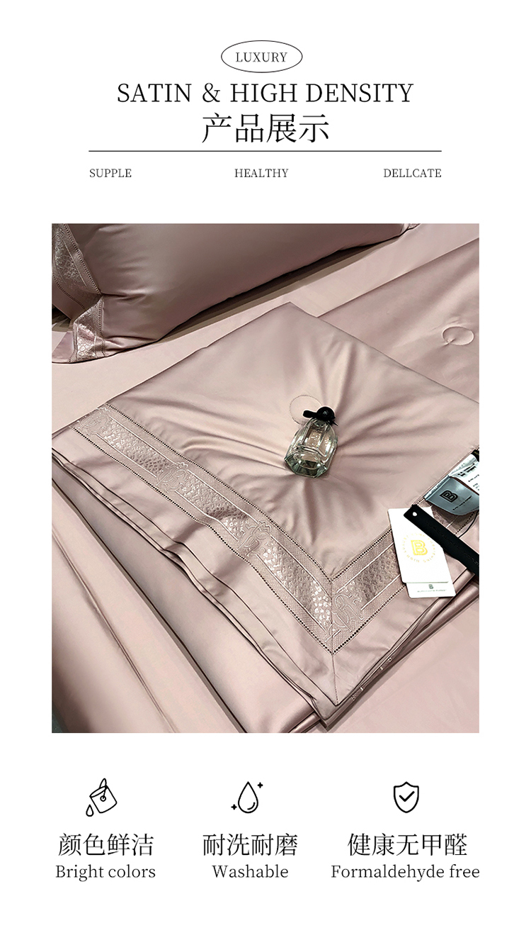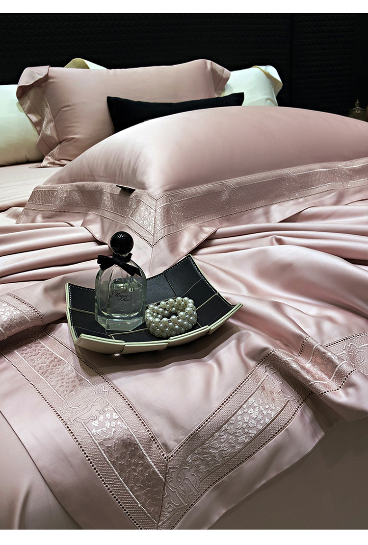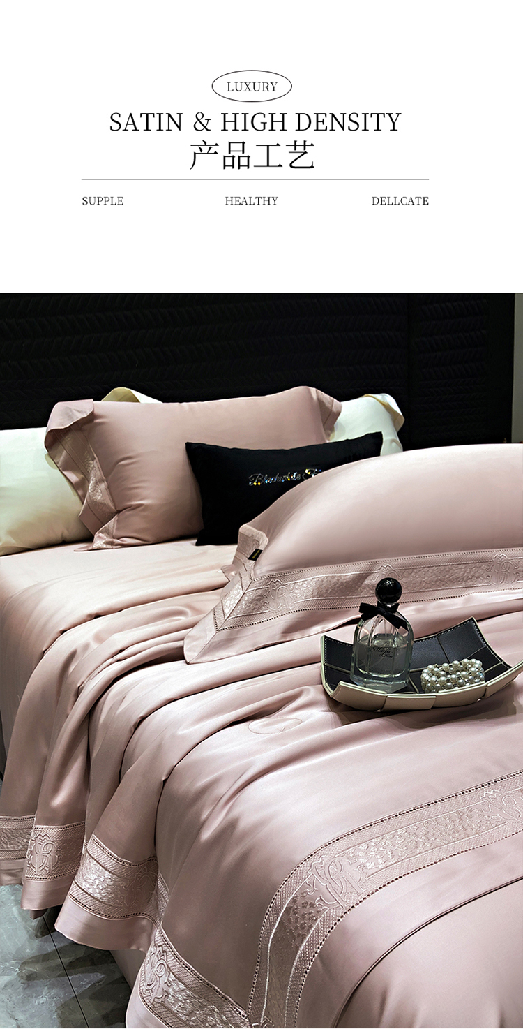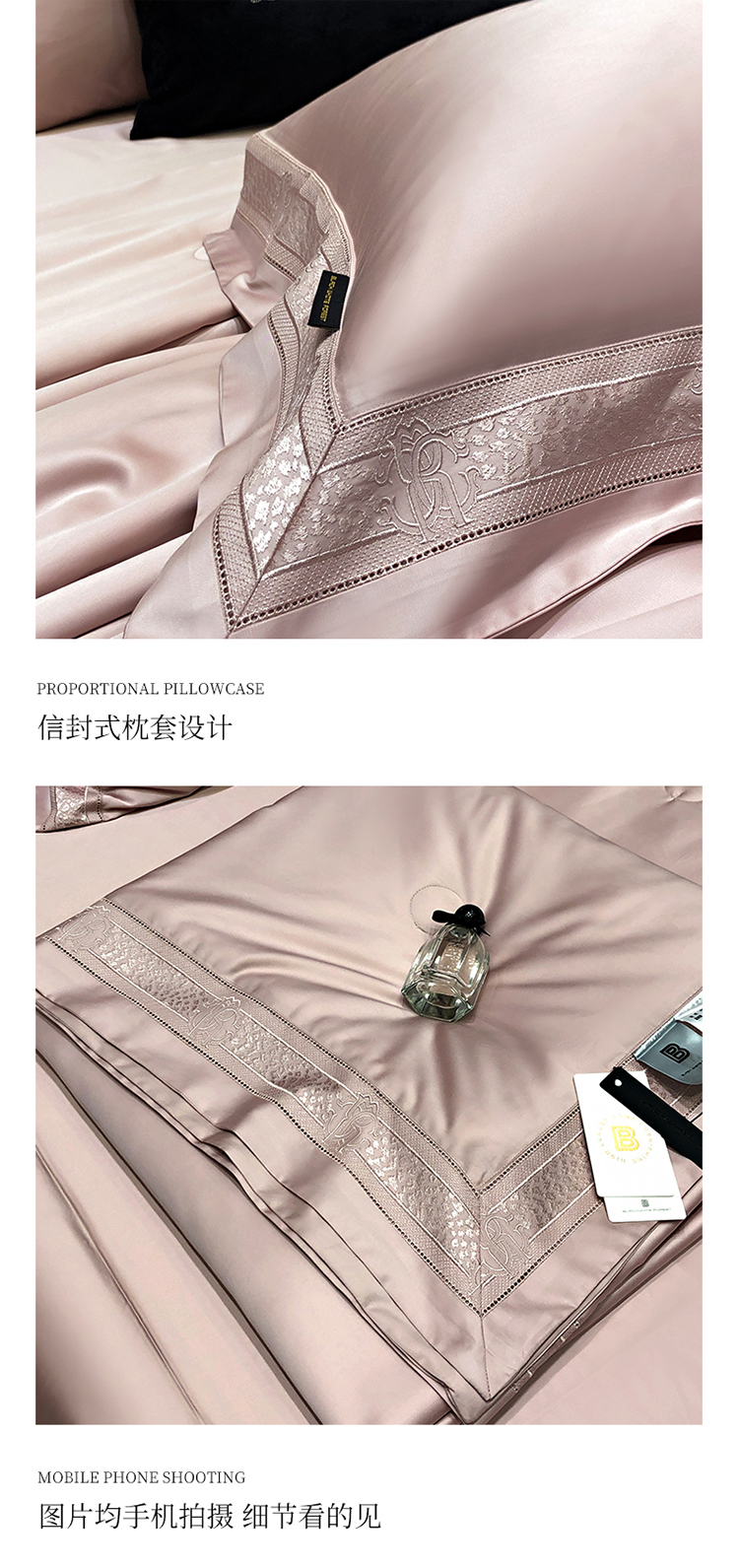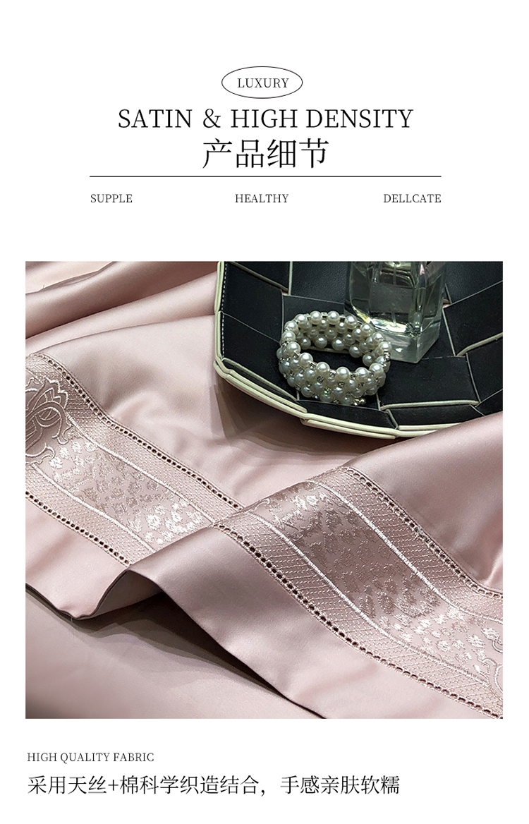 (总)黑白森林2024款 80X80S高支天丝棉四件套镂空蕾丝花边天丝全棉,尚美-晨夕粉,尚美-古象白,尚美-青砂绿,尚美-银雪灰