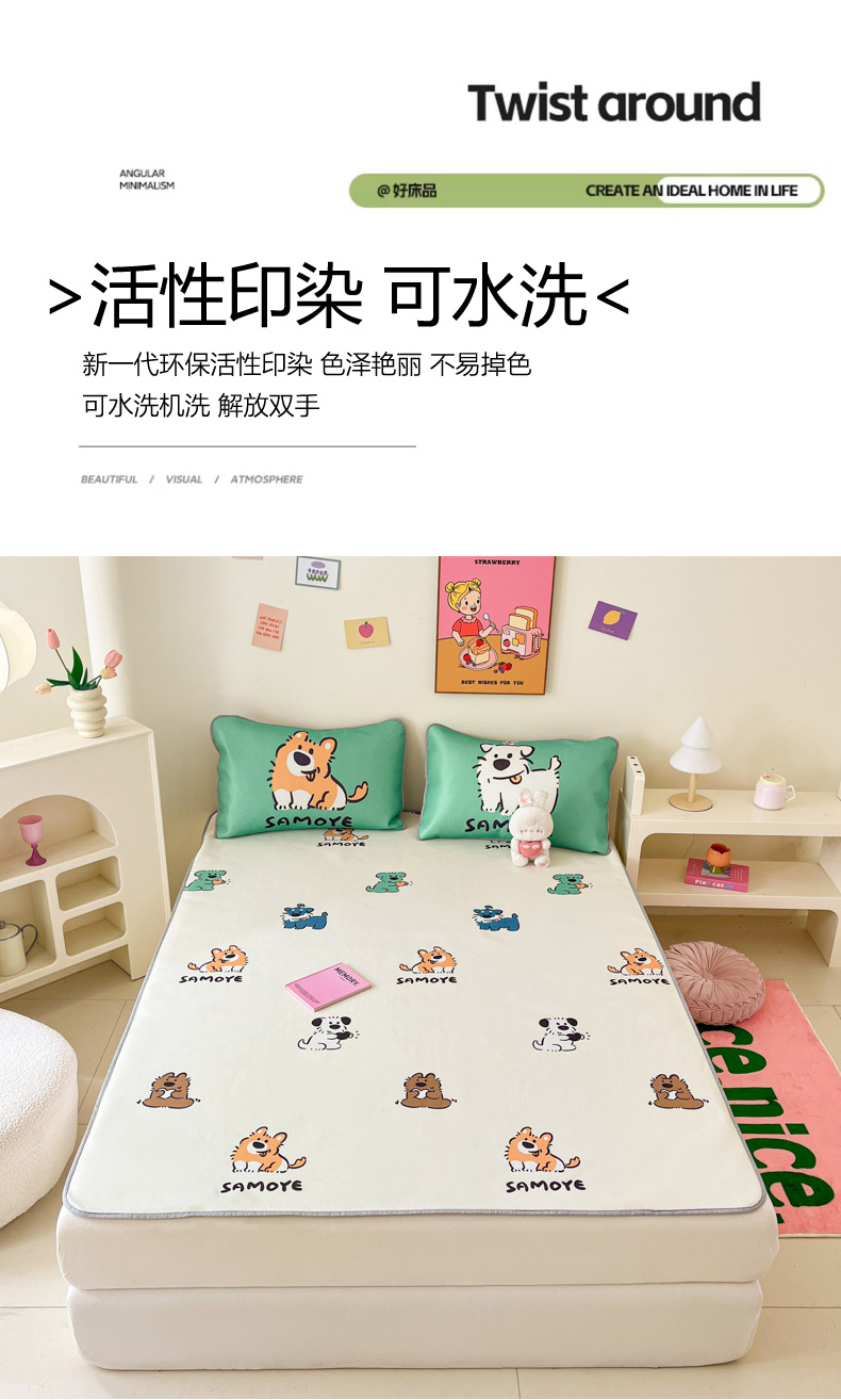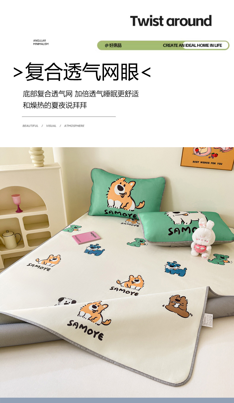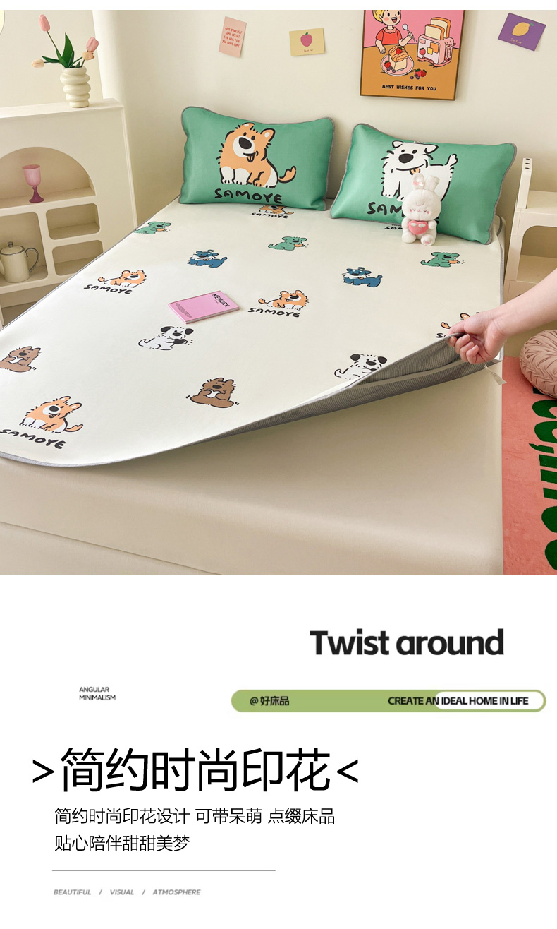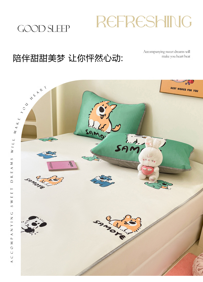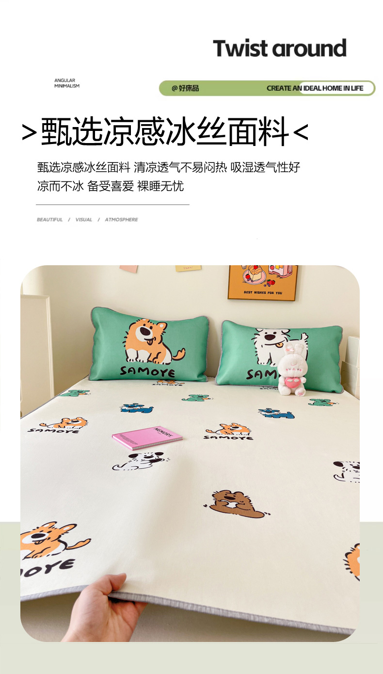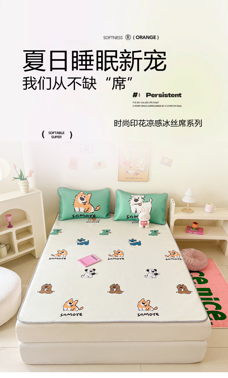 寐居家纺 2024新款A类时尚印花凉感冰丝凉席 汪仔部队