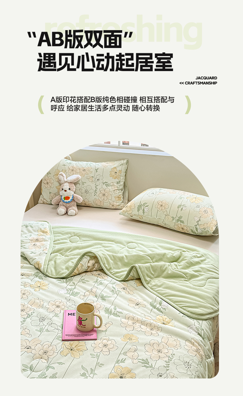 (总)美梦里 2025春夏新款A类云母凉感夏被夏凉被空调被--幸运多,幸运多-粉色,幸运多-茶灰色,幸运多-蓝色,幸运多-绿色,幸运多-天蓝