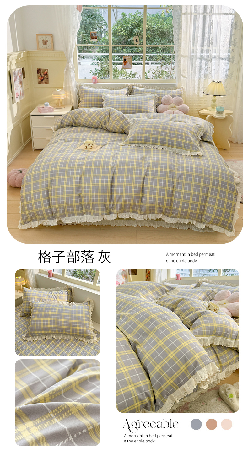 商品名称:美伦美焕 2024新款印花床盖四件套格子部落 灰