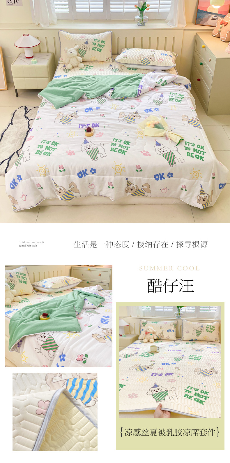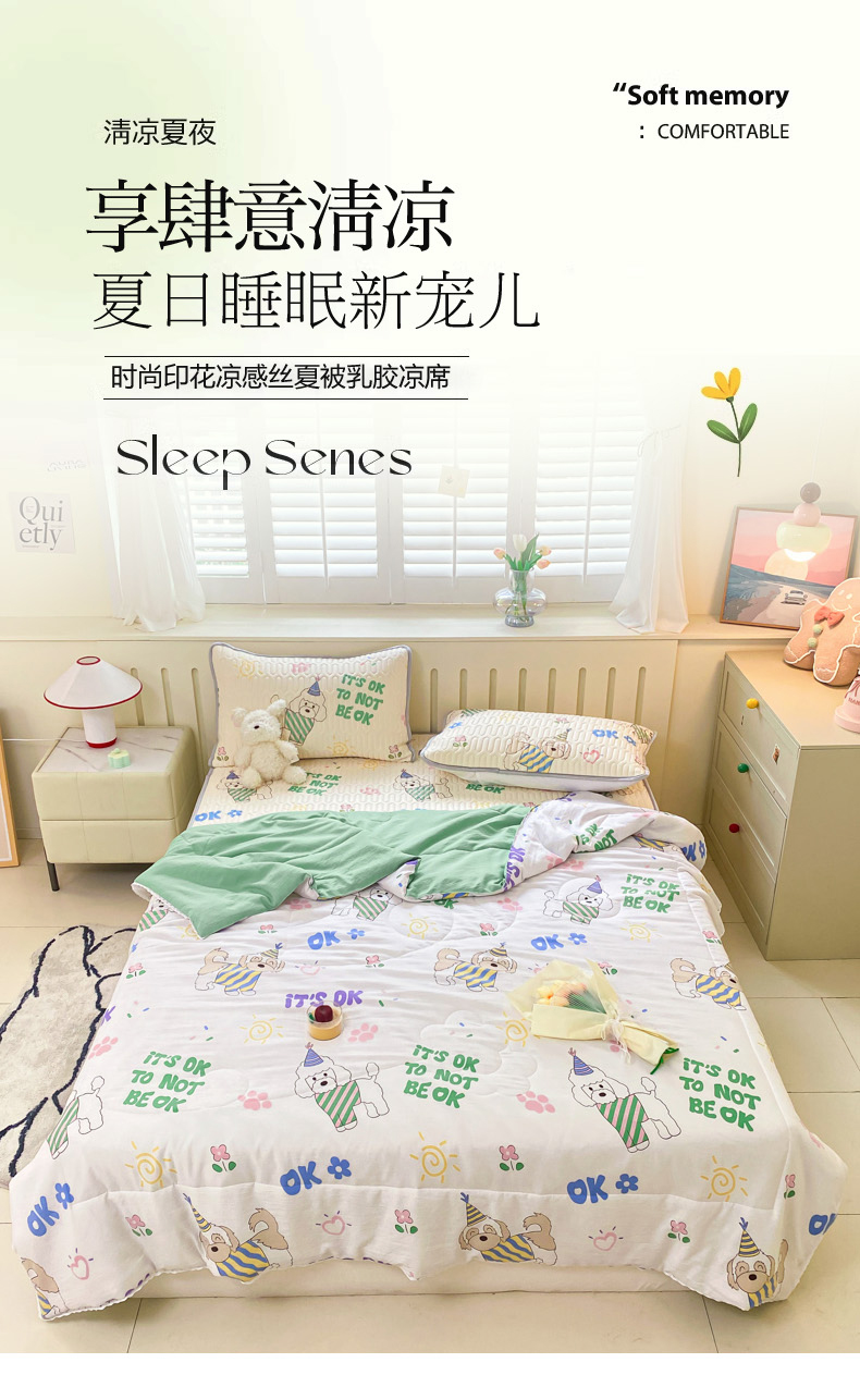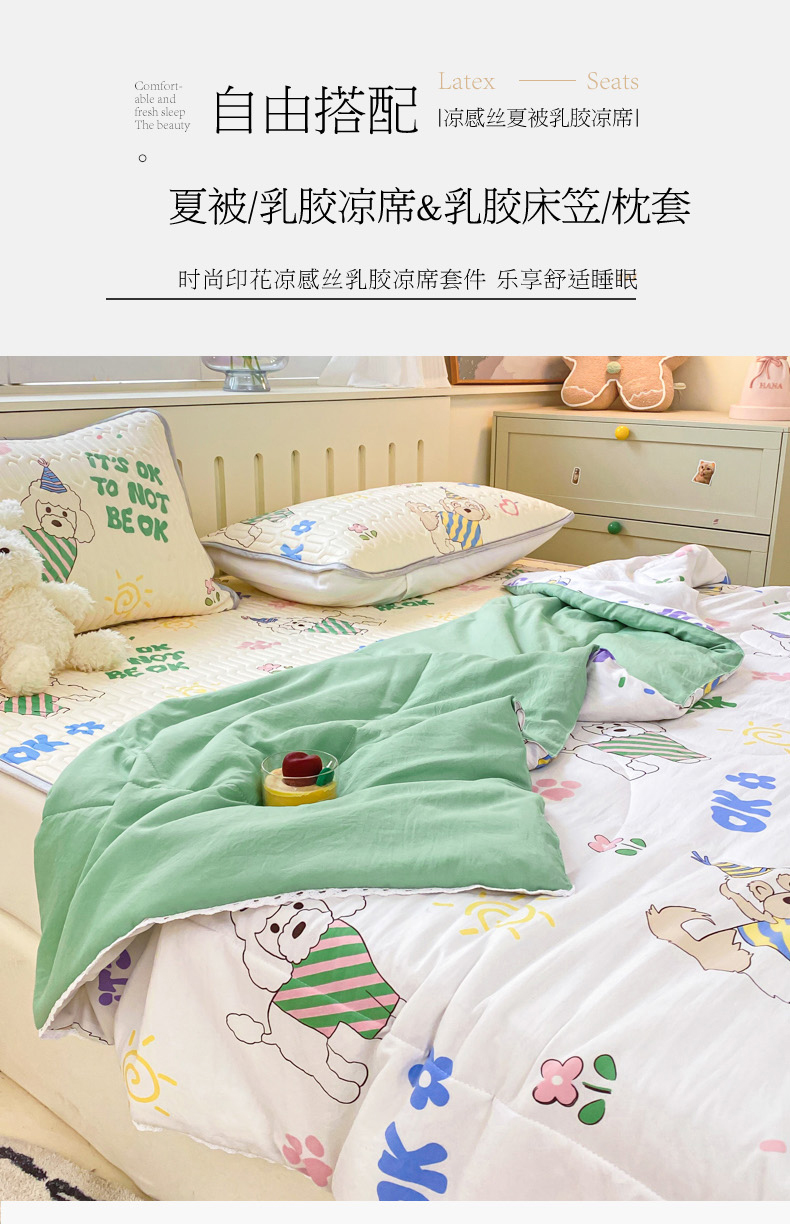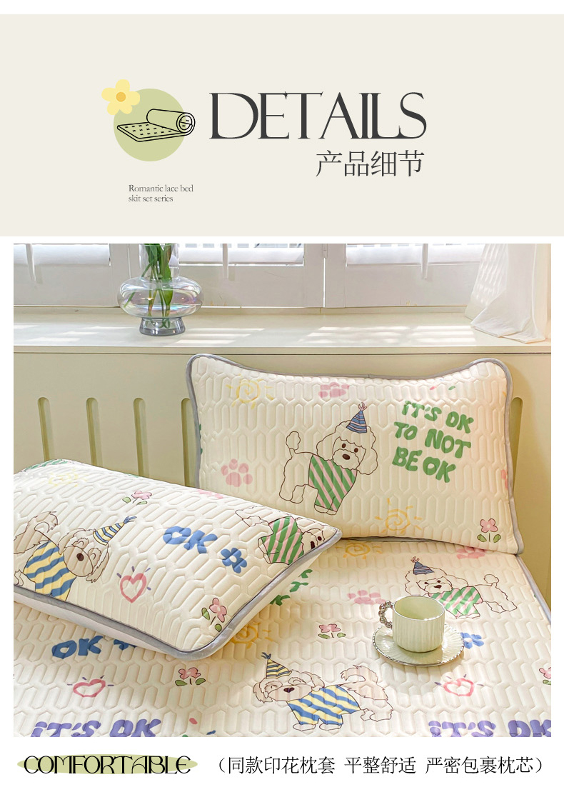 当前位置: 91家纺网 > 商品网购 > 床品套件 > 四件套 > 夏被四件套 > 寐居家纺 2024新款时尚印花凉感丝乳胶凉席小花边夏被四件套系列 酷仔汪