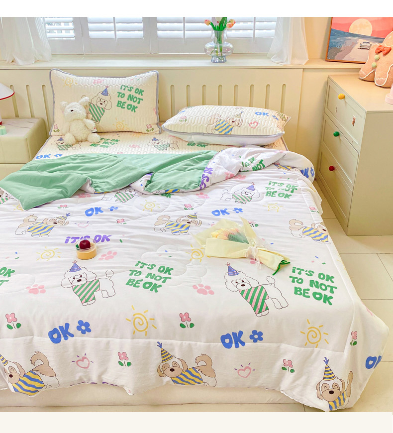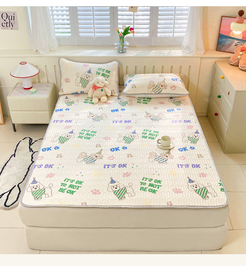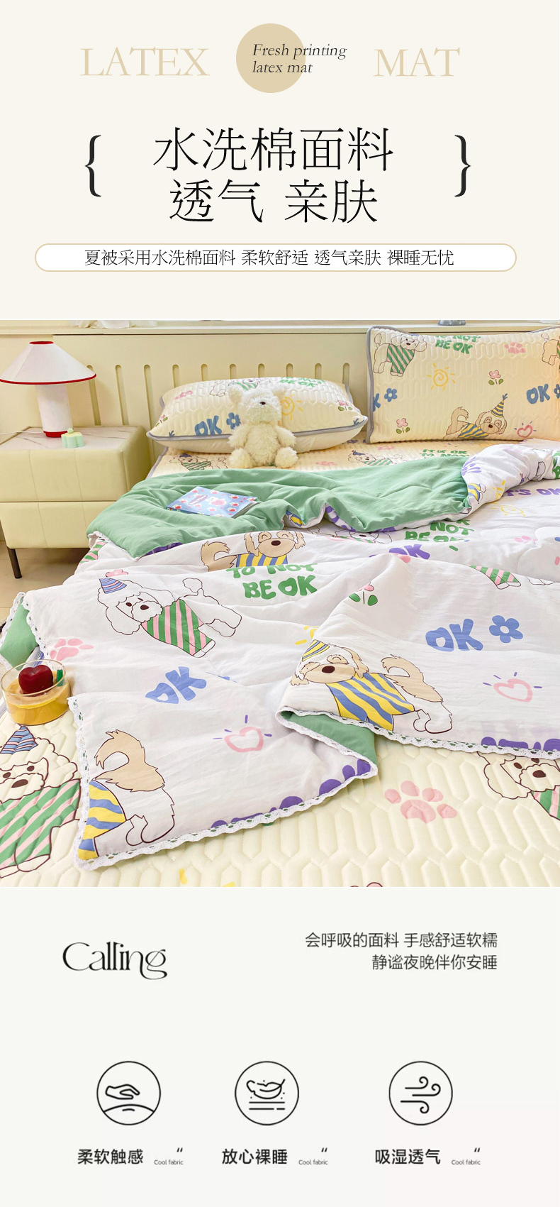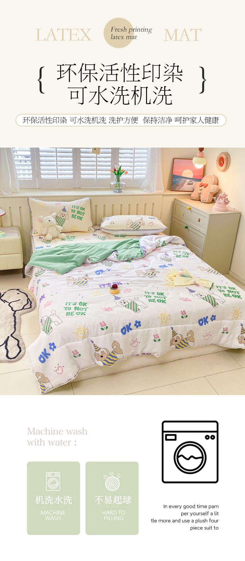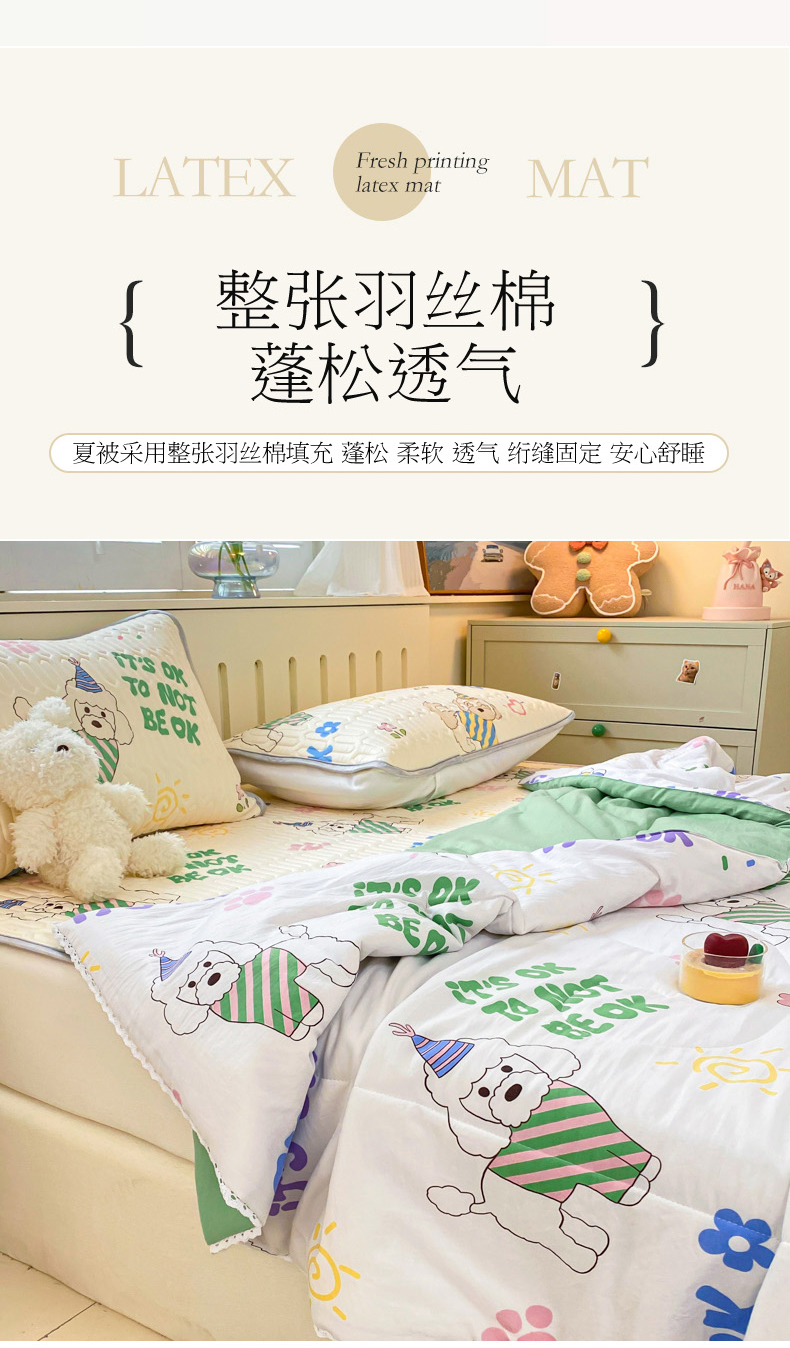 当前位置: 91家纺网 > 商品网购 > 床品套件 > 四件套 > 夏被四件套 > 寐居家纺 2024新款时尚印花凉感丝乳胶凉席小花边夏被四件套系列 酷仔汪