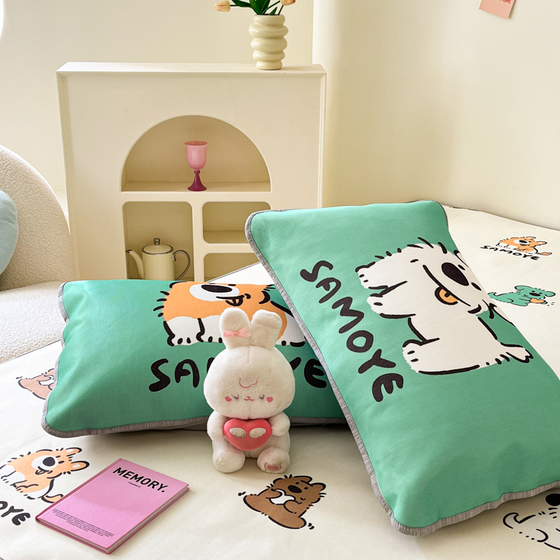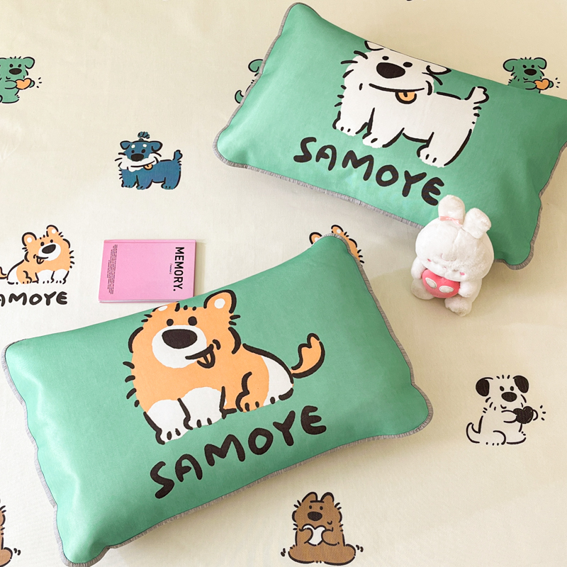 寐居 2024新款时尚印花冰丝席大版枕套 银汪仔部队