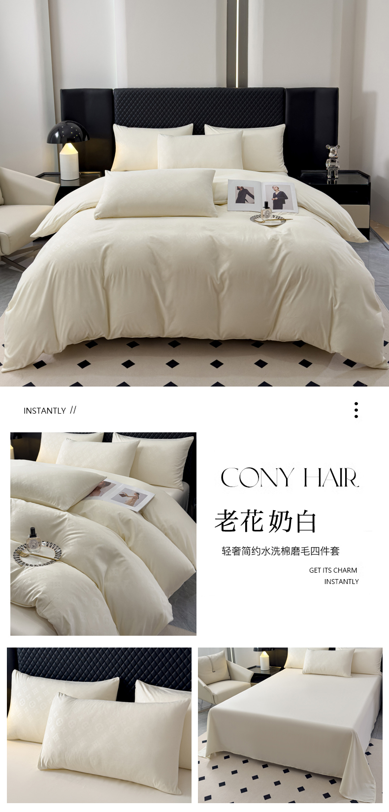 当前位置: 91家纺网 > 商品网购 > 床品套件 > 四件套 > 普通磨毛四件套 > 大米家居 2024新款轻奢大牌风压花水洗棉磨毛四件套 老花-奶白
