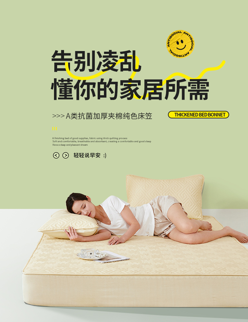 商品名称:(总)茉保家纺 2024新款加厚磨毛回形格夹棉床笠