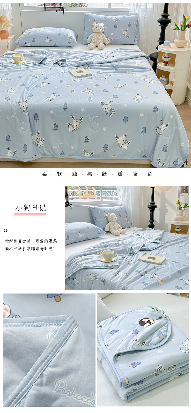 商品名称:葡萄家 2024新款A类母婴级大豆纤维牛奶丝针织棉夏凉被 小狗日记