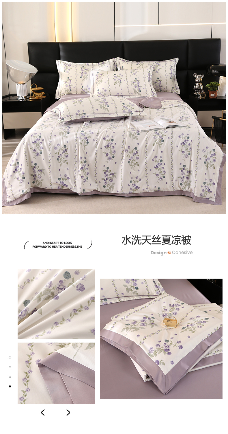 商品名称:富之航家纺 2024新款拼角宽边水洗天丝夏被四件套 园艺紫